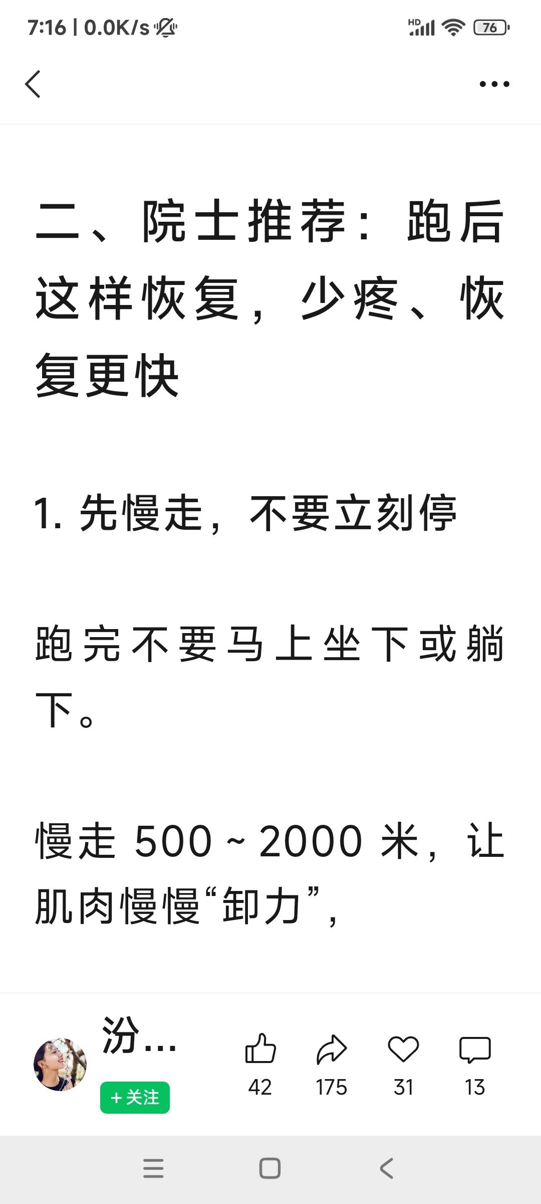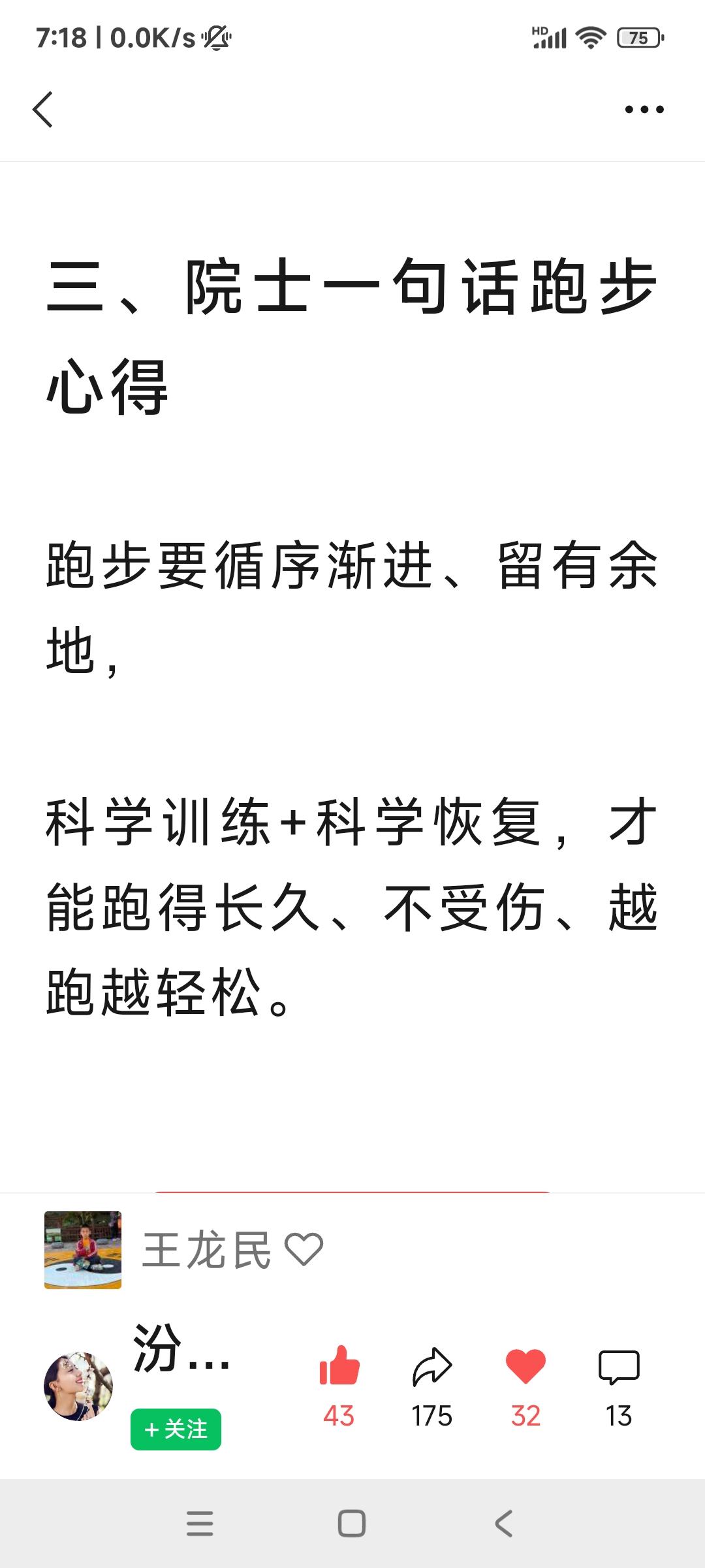科学跑步+科学恢复,才能不受伤跑的持久。 运动康复专家,74岁厉建安院士64岁开