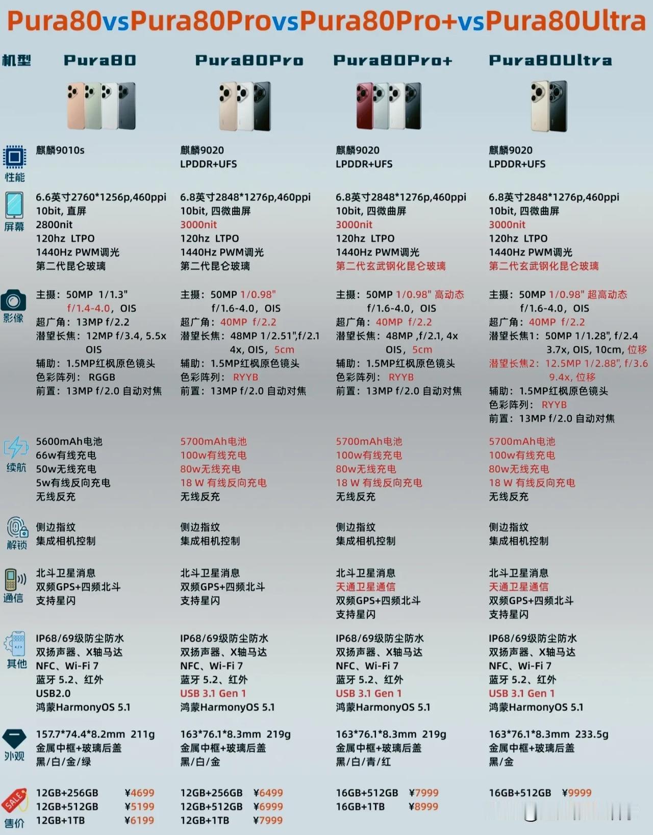 Pura90 Pro Pura80标准版 主摄规格和80Pro一致,但潜望长焦砍到了50MP 4x,没有80Pro的高规格潜望
