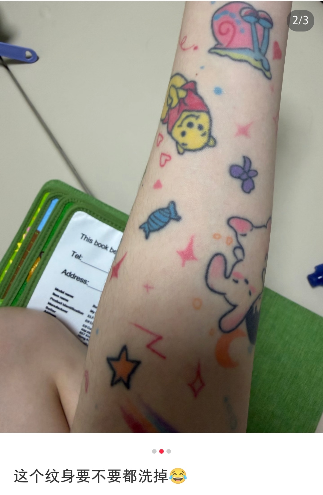 哈哈哈这个纹身咋跟贴纸的画风差不多