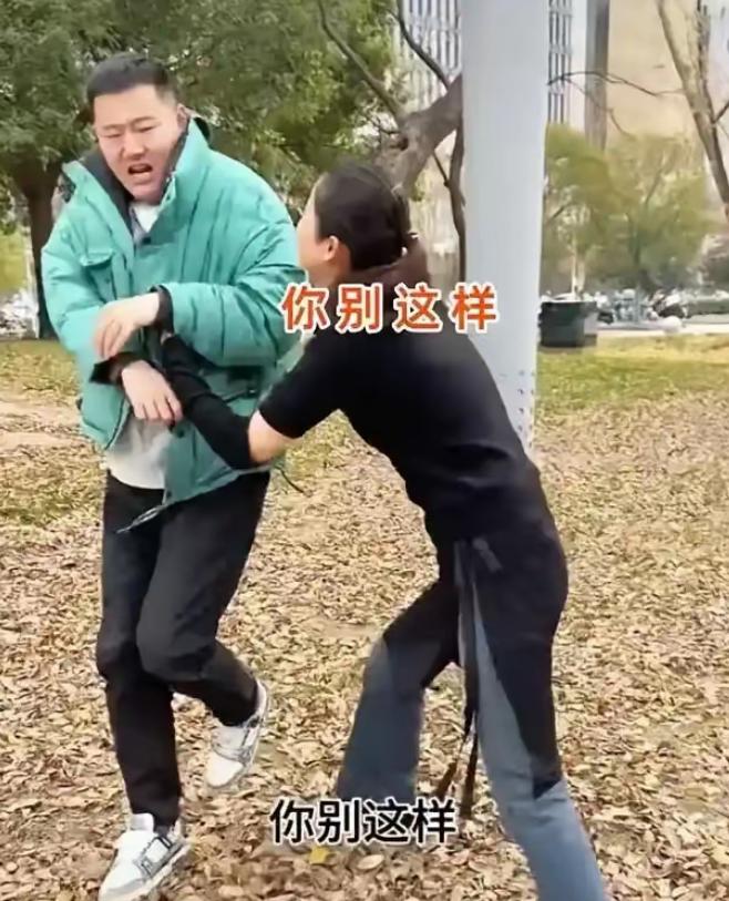 到了这个地步,场面已经控制不住了,这个男人被追得实在没办法,只好直截了当地让她别动手动脚,说要聊就好好聊。