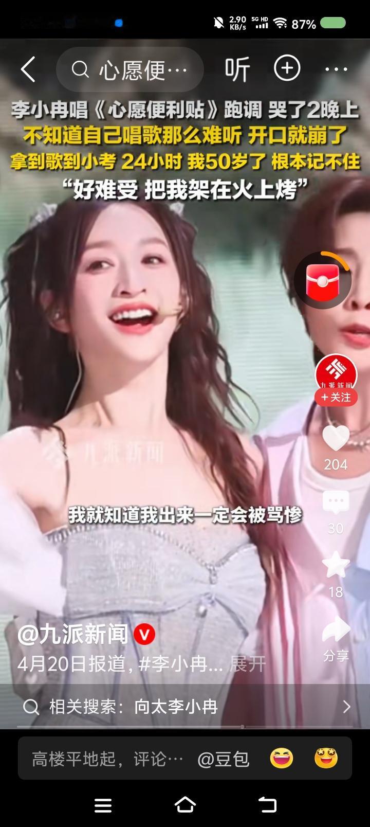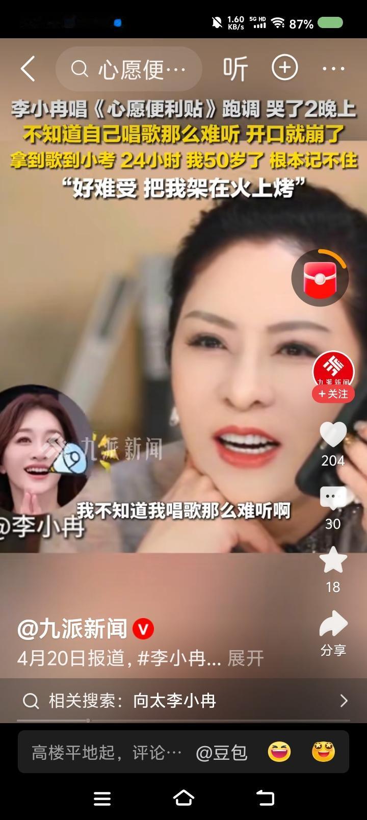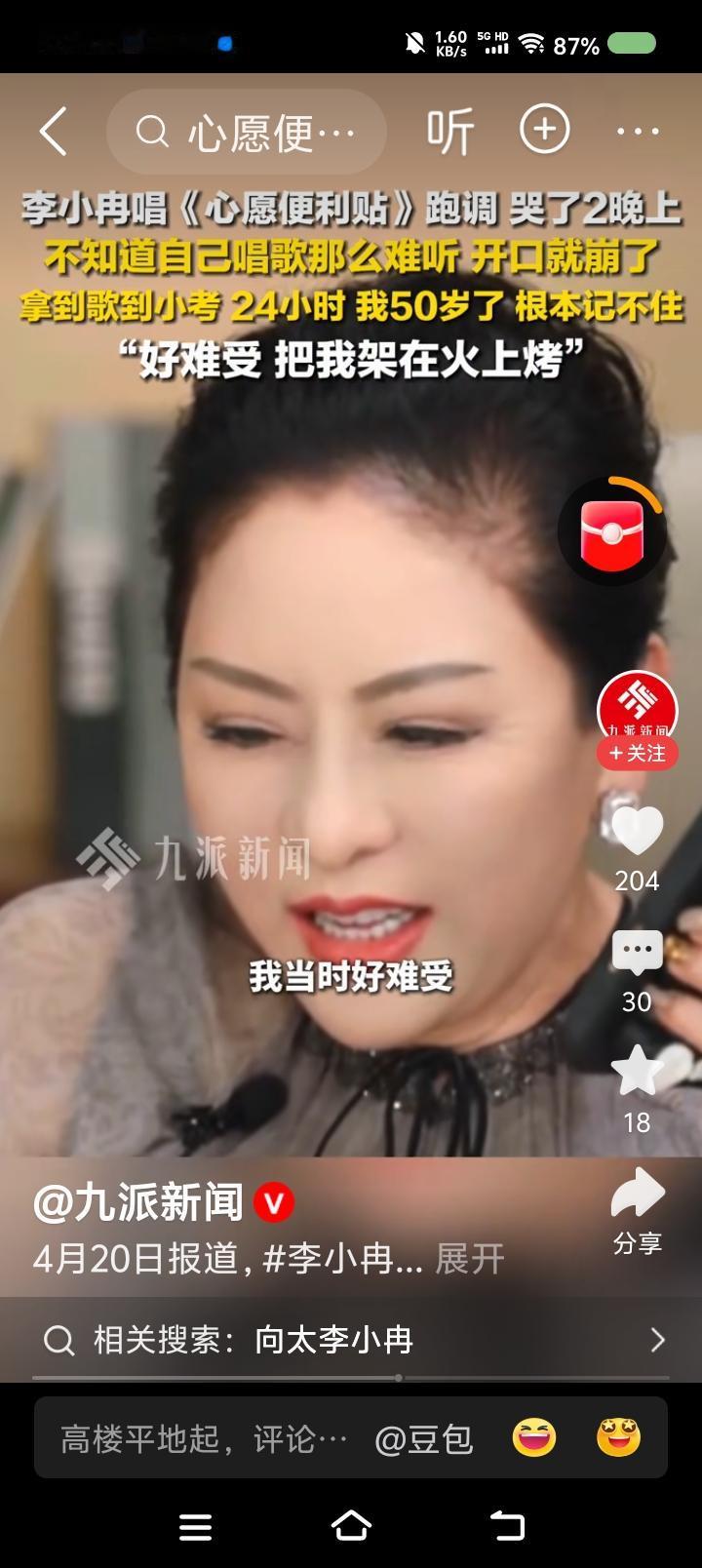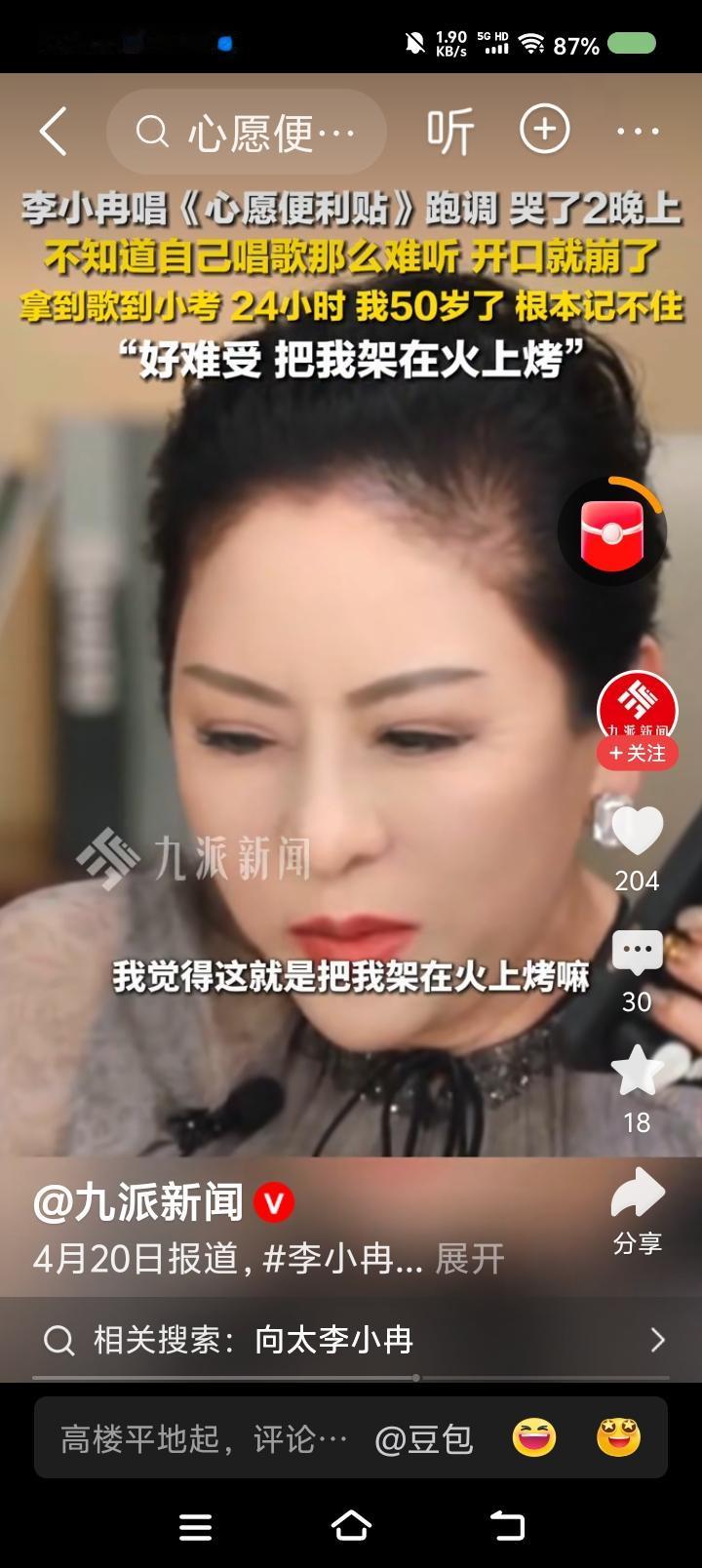 据报道,李小冉节目中唱歌,发挥不佳,引发批评。自称“很努力地唱了,开口就崩了,好难呀,我50了……”