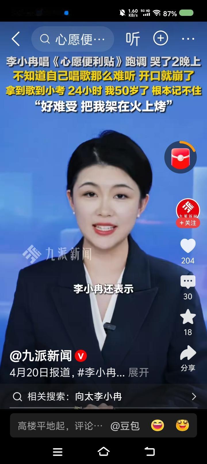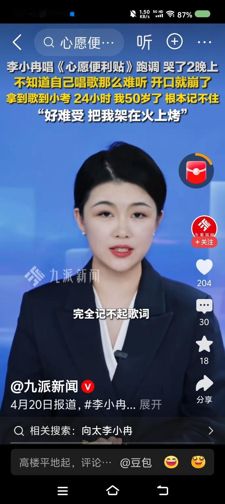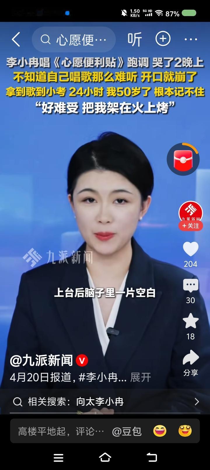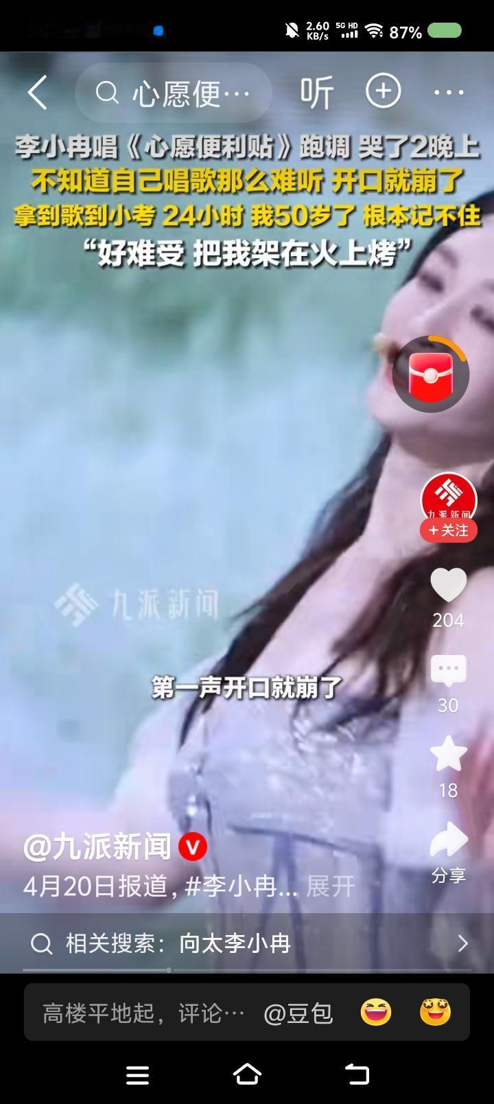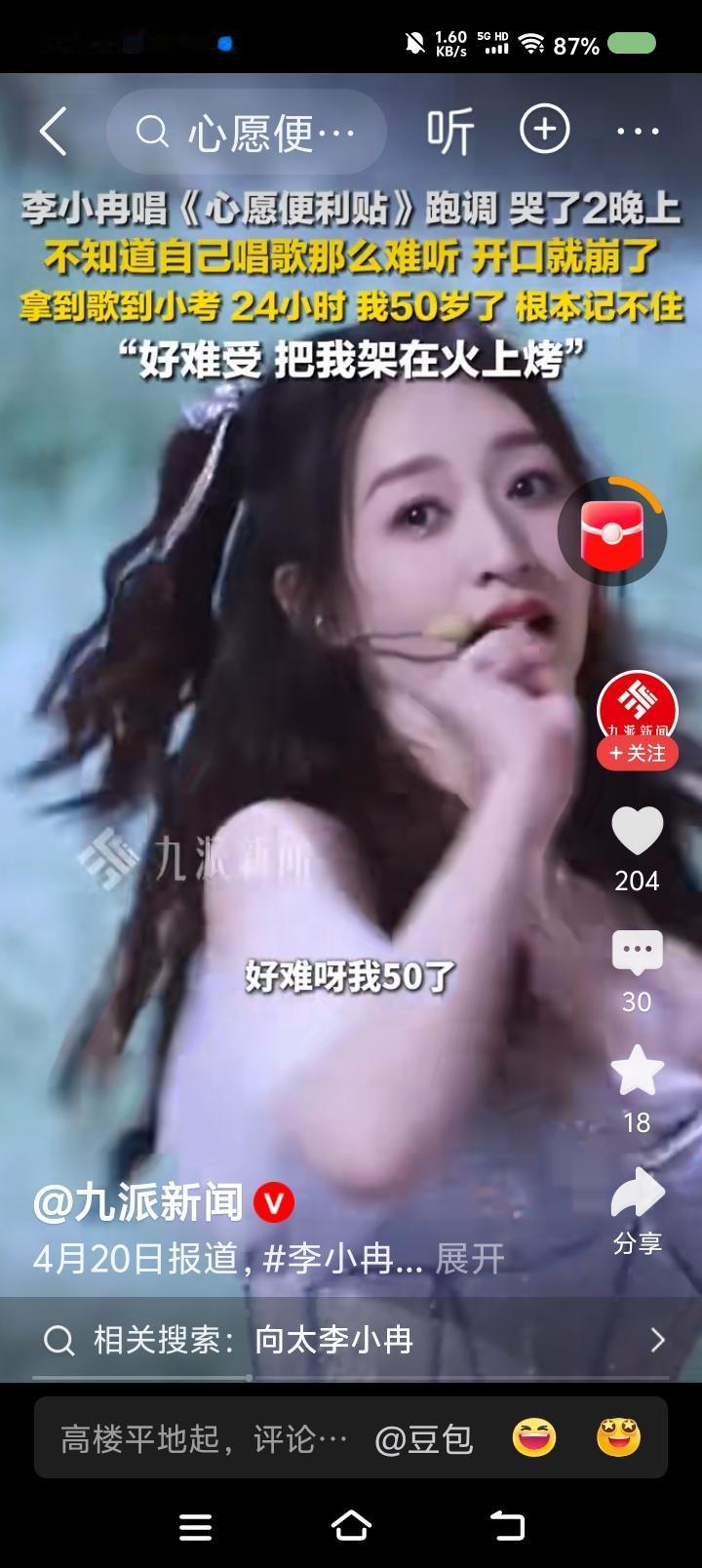 据报道,李小冉节目中唱歌,发挥不佳,引发批评。自称“很努力地唱了,开口就崩了,好难呀,我50了……”