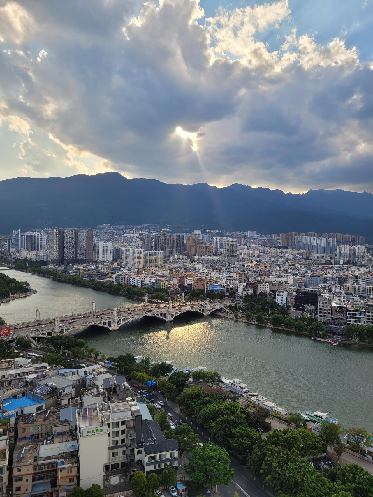 今天上空有点浅蓝浅云,但与一级优大蓝天如我拍的云南洱海(见图),差別很大。