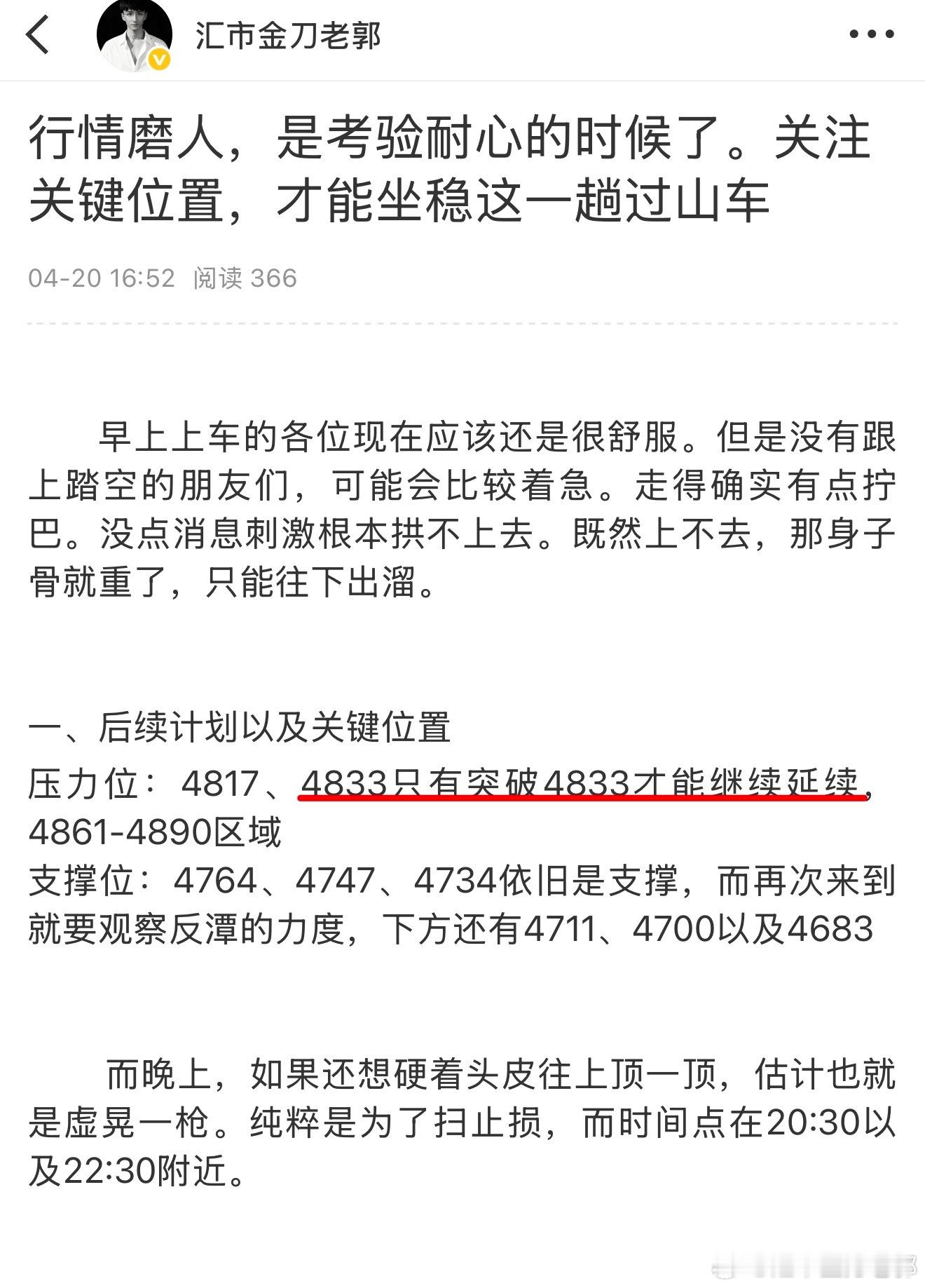 黄金金价波动黄金策略现货黄金黄金分析 昨天提到压力位,只要突破才有延续,正正好好,没抢到有点可惜。继续先下看4795。