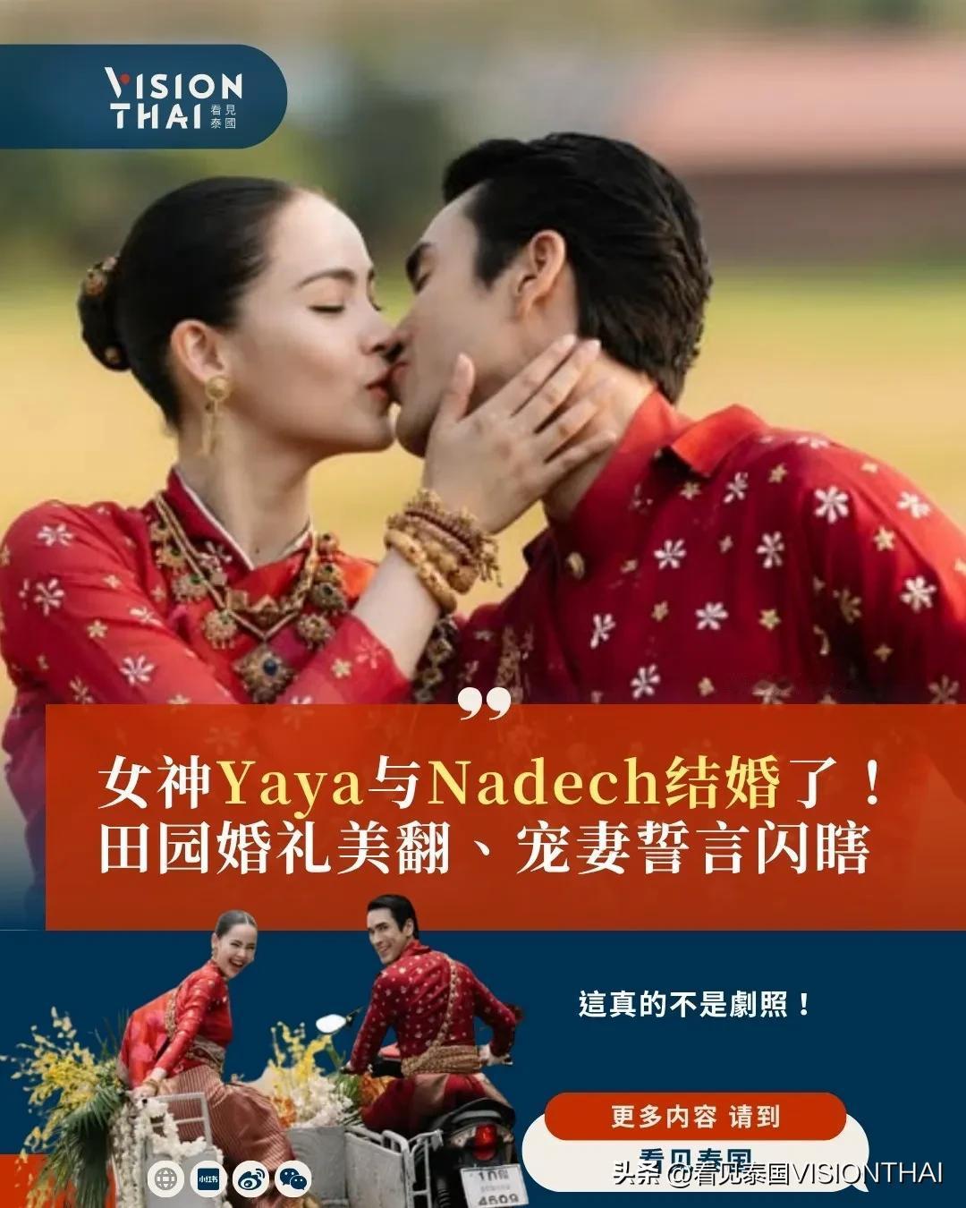 泰国演艺圈迎来世纪喜事!被誉为「泰国国民CP」的纳迪奇·库吉米亚(Nadech Kugimiya)与雅雅·乌拉萨雅(Yaya Urassaya),在历经16年的爱情长跑后,终于在本月17日于Nadech的家乡孔敬府(Khon Kaen)正式举行婚礼。这场宛如泰剧走入现实的梦幻仪式,不仅霸占泰国社群头条,Nadech在婚礼上「凡事听老婆」的宠妻誓言更成为热搜话题。