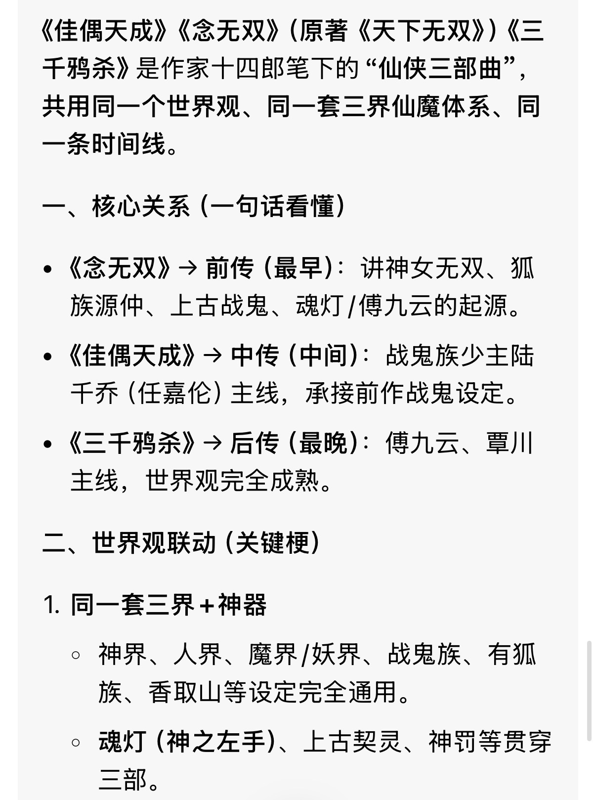 2026了周生辰的剔骨刀还在扎人 原来佳偶天成和念无双还有关联?本来看到周生辰的callback觉得很用心,直到看了导演的采访我才是大震惊:佳偶、念无双、三千鸦杀居然是同款世界观,而且念无双里的郦朝央,居然是陆千乔的亲妈!几部剧里的源仲和傅九云也都是同一个人,导演把我的仙侠宇宙都给打通了,有没有书友来科普下啊?电视剧佳偶天成