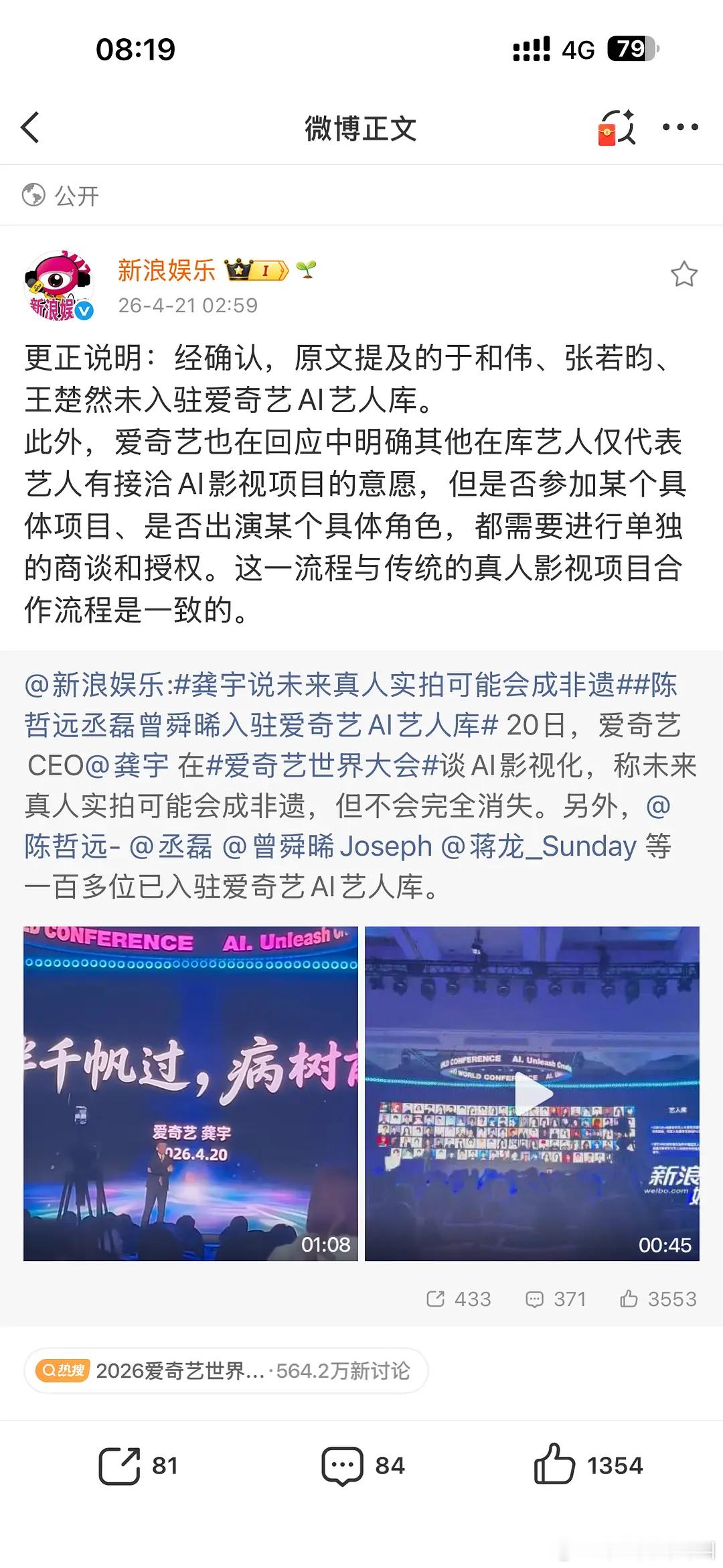 爱奇艺凌晨针对AIGC影视争议发声明: