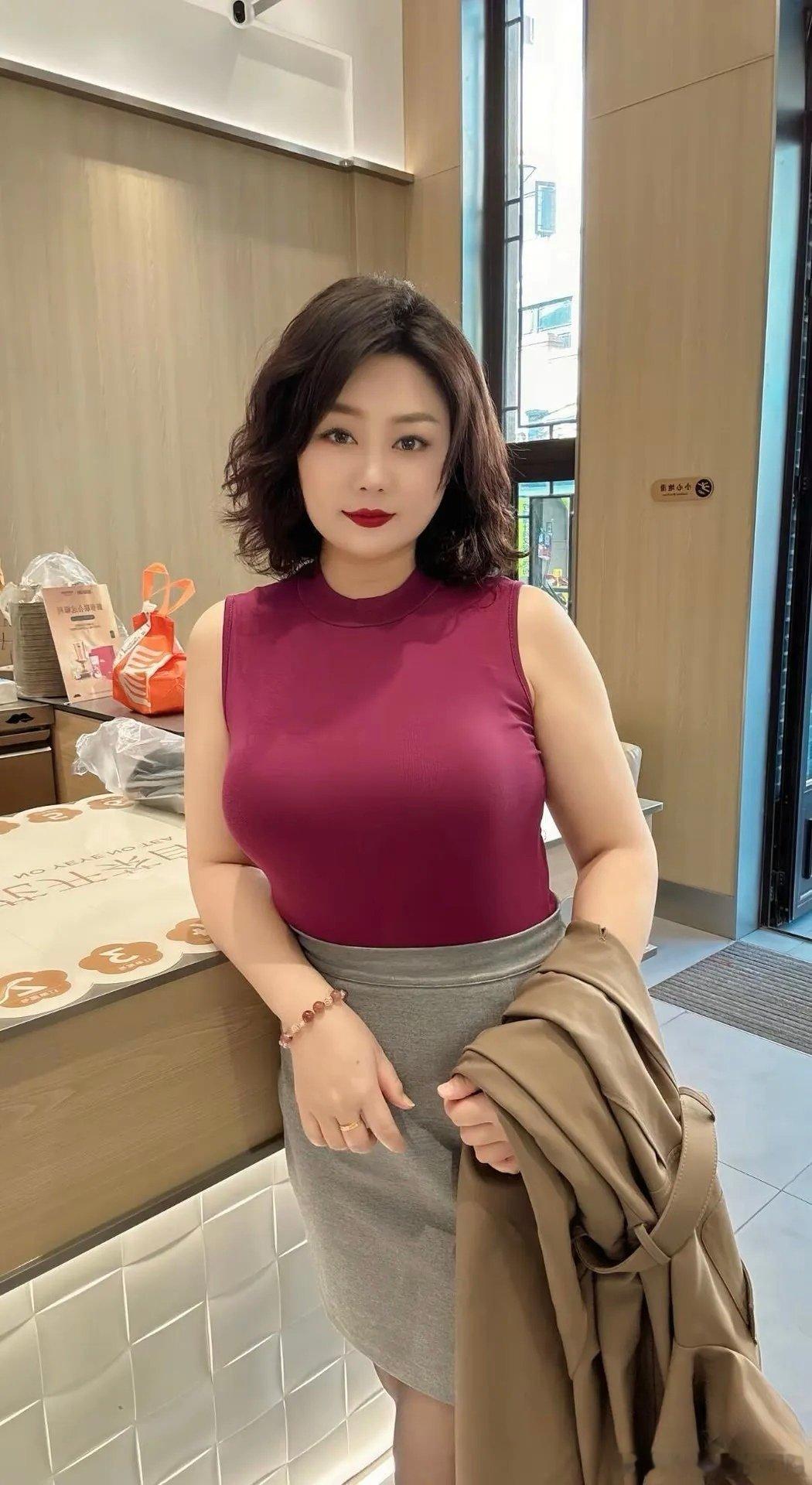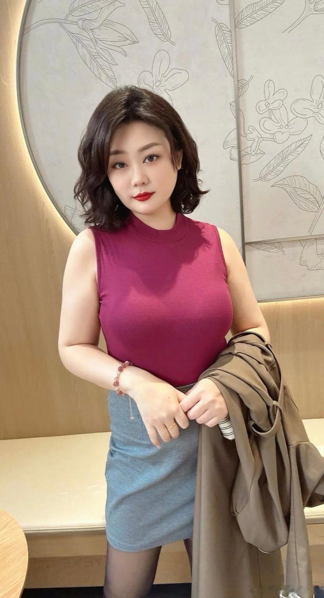 穿搭时尚穿搭今天穿什么ootd 酒红色无袖体恤搭配灰色制服短裙很有迷人韵味