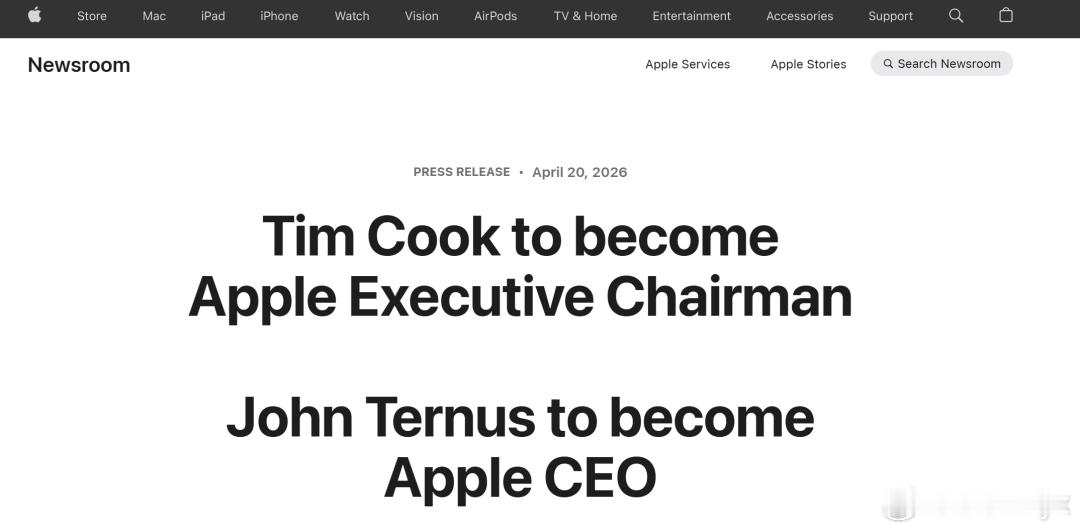 苹果市值从3500亿美元飙升至4万亿美元,全球活跃设备突破25亿部,稳稳站在科技行业顶端。此次接任的特纳斯,是效力25年的苹果老将,主导过iPhone Air、MacBook Neo等爆款,深耕硬件工程与自研芯片领域,获得库克与董事会一致认可。库克也发布公开信致谢用户,坦言这并非告别,未来仍会继续陪伴苹果成长。