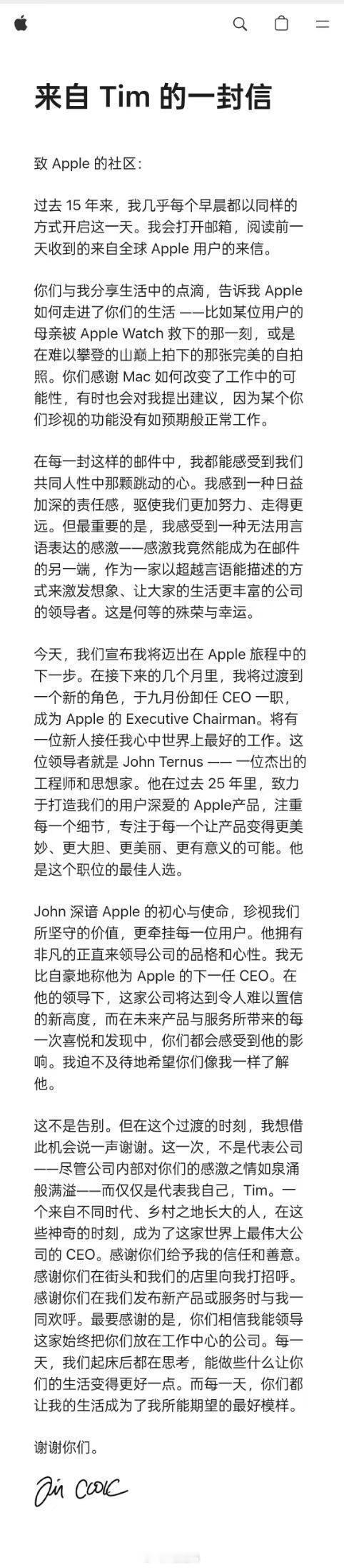 苹果新任CEO特努斯是谁换帅了!不知道苹果后面有什么变化!