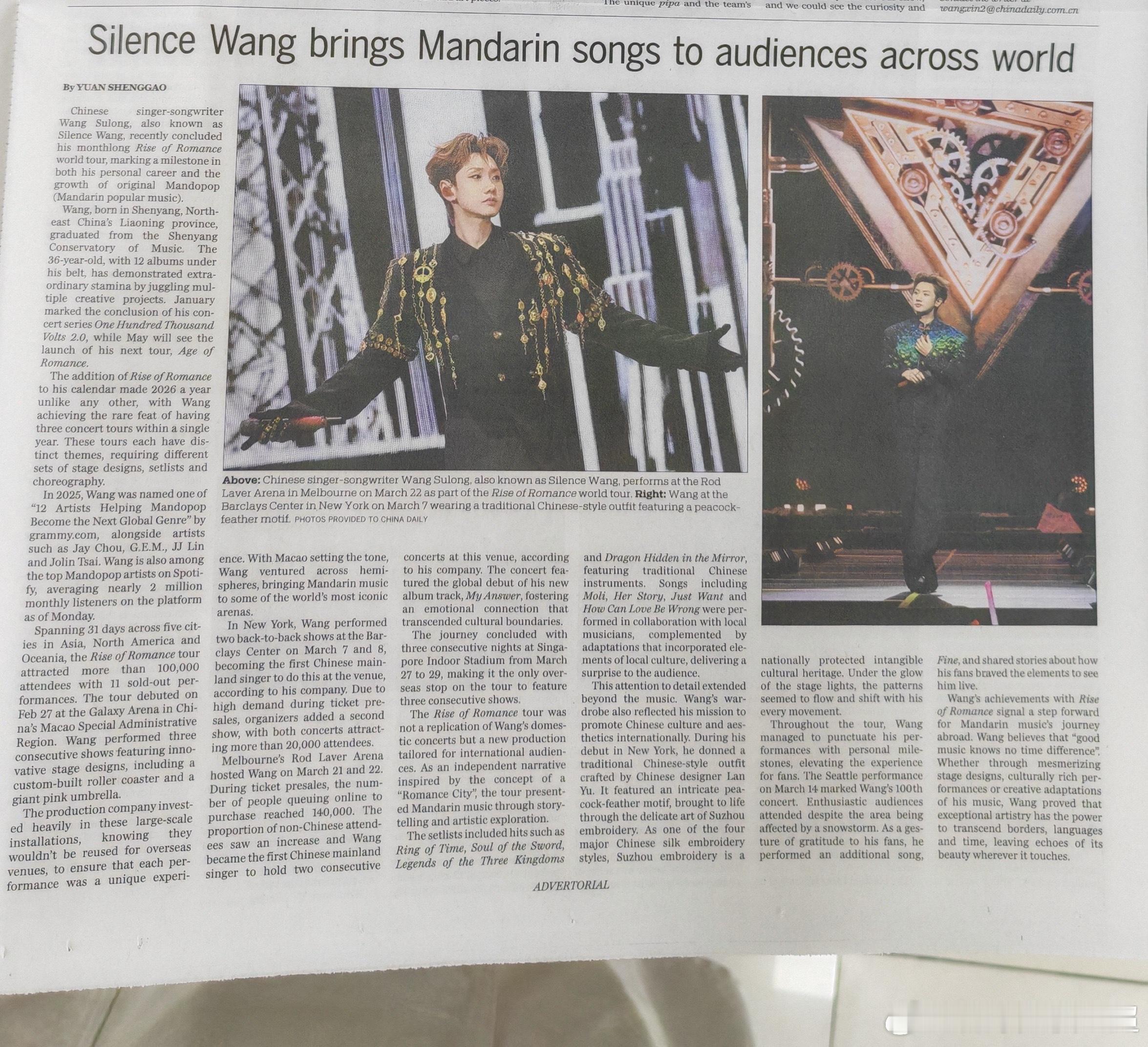 中国日报报道汪苏泷世巡从耳机里的少年到站上世界舞台,汪苏泷世巡被中国日报报道,真
