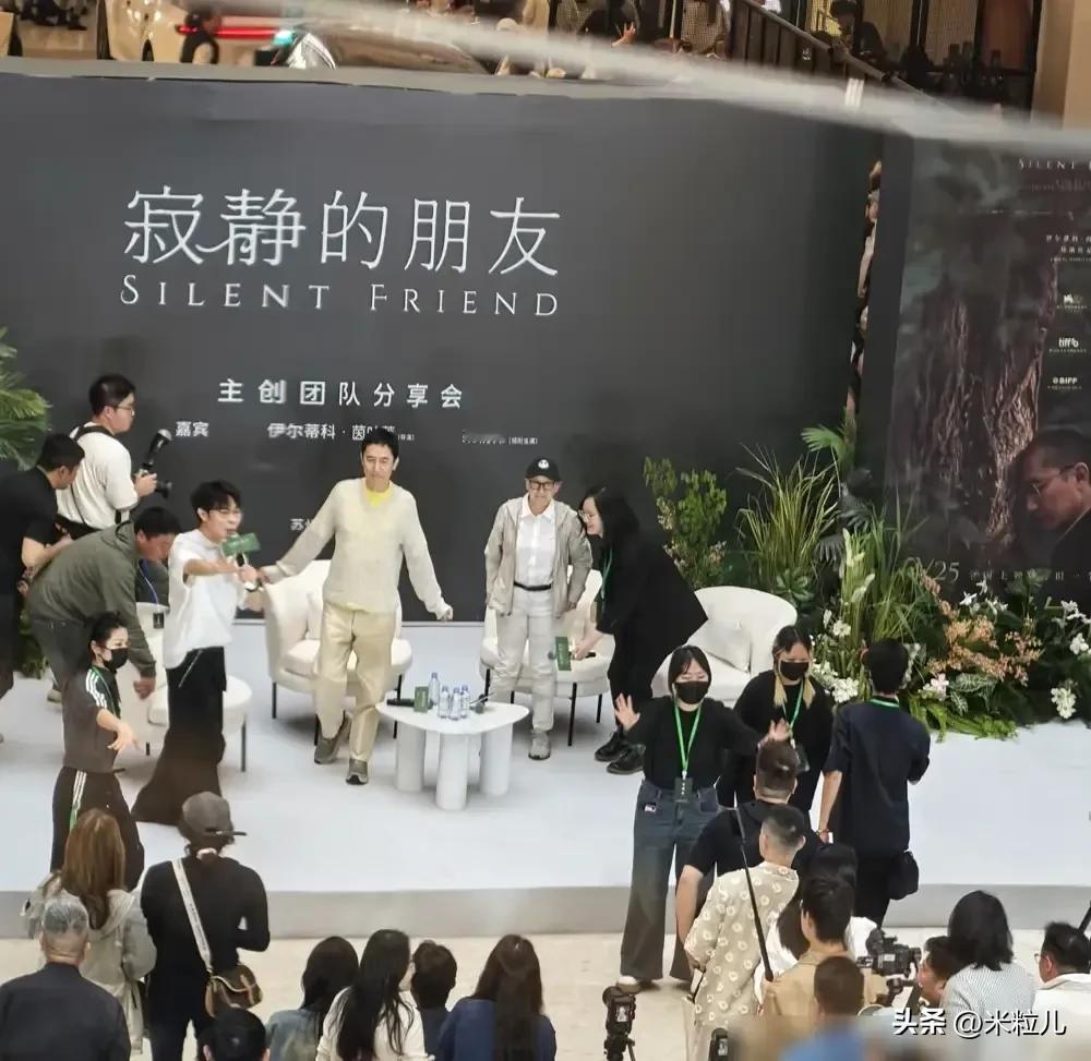 据说每次都是刘嘉玲牵着他,这次没有管他,刘嘉玲就静静坐在观众席后排,像个隐身的定心丸。