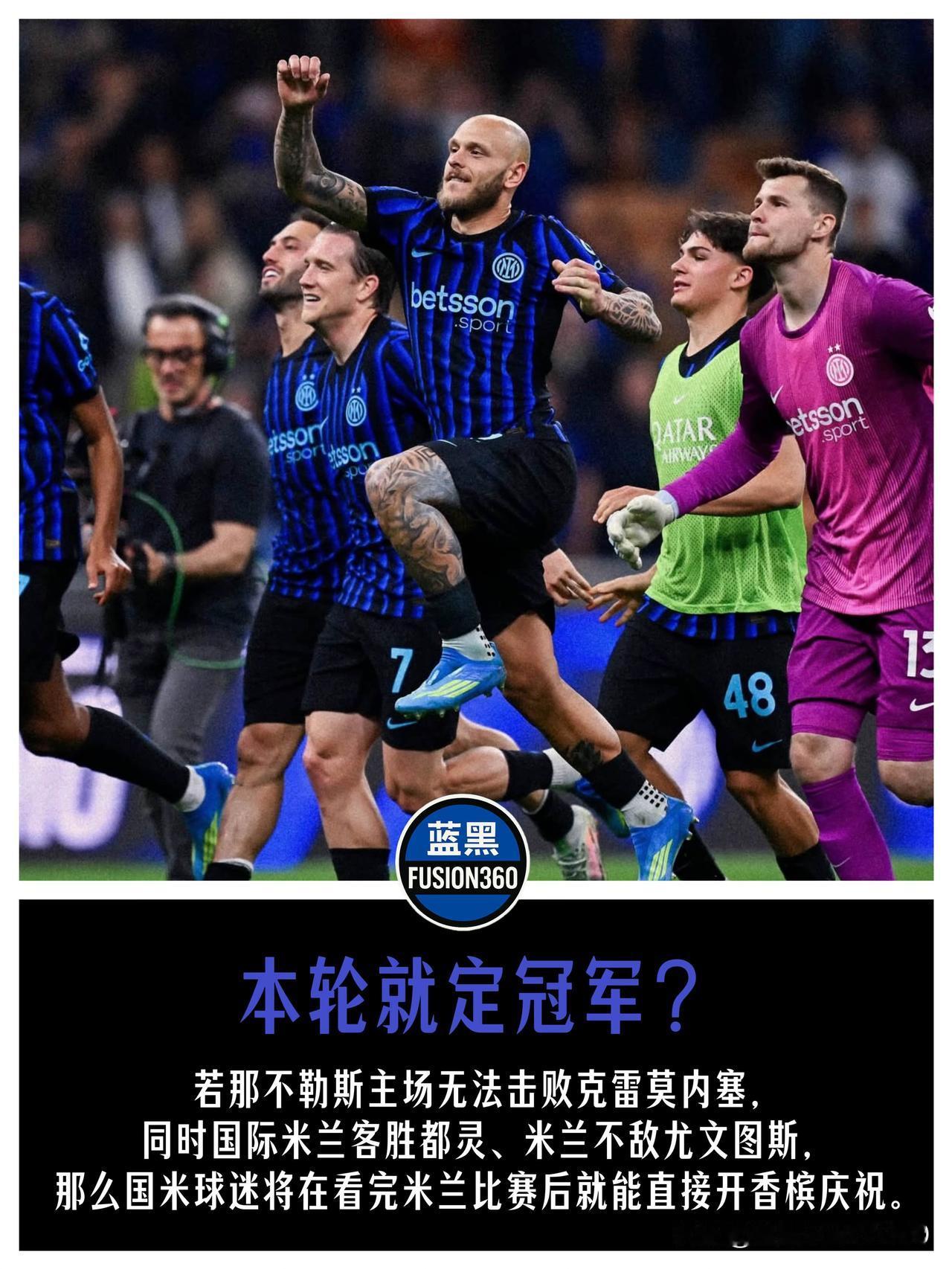 主动权100%在国米,区别只是“在哪里庆祝”。国际米兰 💙🖤