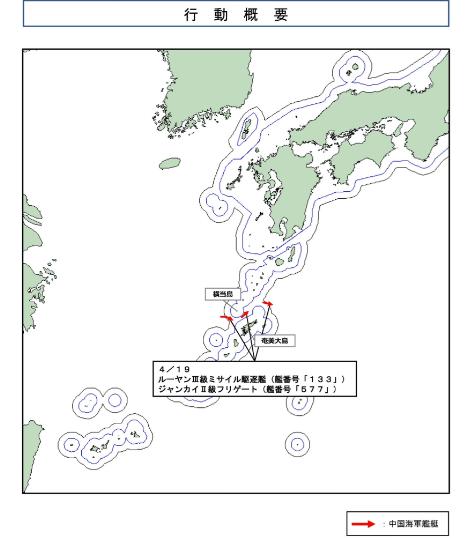 日方还特意发了通报,说他们海上自卫队在鹿儿岛县横当岛西南方向约60公里的海域,发现了这两艘舰艇的动向。