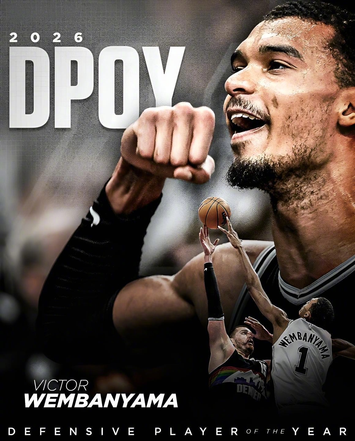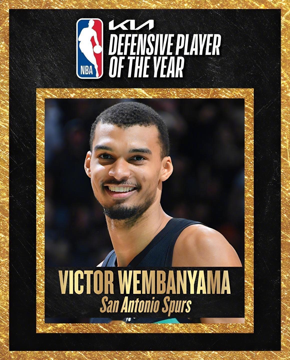 文班亚马全票当选DPOY,获得了所有的100张第一选票,成为自1982-83赛季该奖项设立以来首位全票夺奖的球员。本赛季常规赛,文班亚马场均上阵29.2分钟,可以砍下25.0分11.5篮板3.1助攻1.0抢断3.1盖帽。