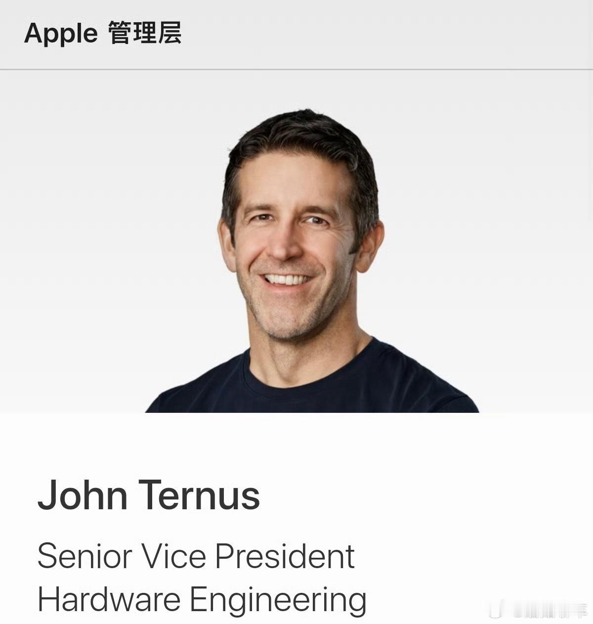 苹果新任CEO特努斯是谁新换这老兄也是个老苹果,而且深度参与了很多设备的研发不知道后续苹果的创新会不会动力更强~库克确实辛苦了,从2011年到现在,也算是后乔布斯时代力挽狂澜的能人了~