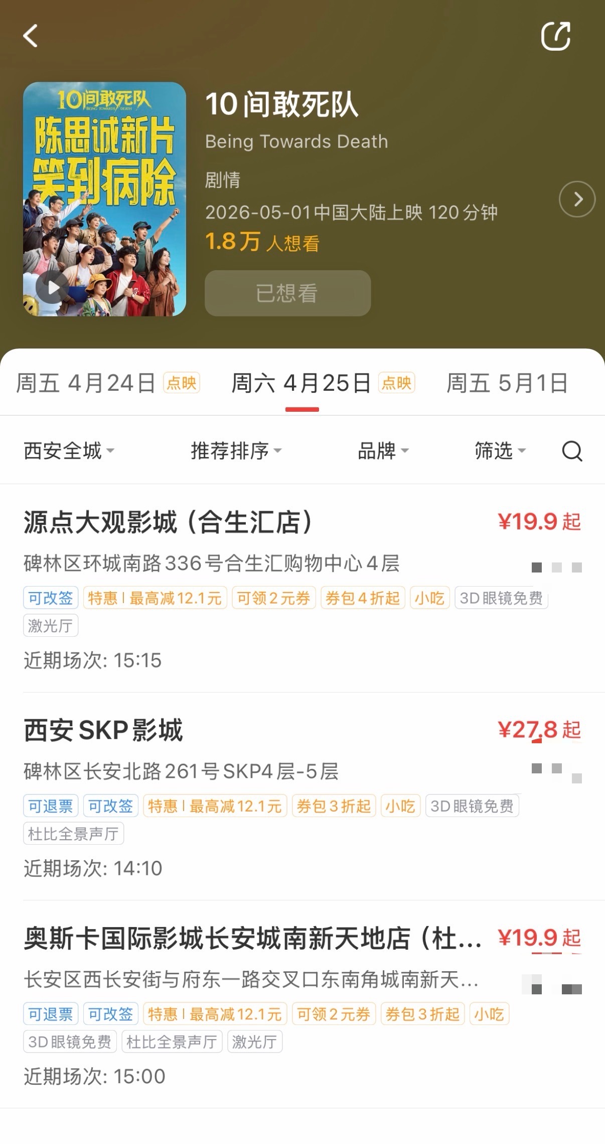 西安也有点映了接下来还有 北京、长沙、长春、哈尔滨、济南、青岛、沈阳、石家庄、深