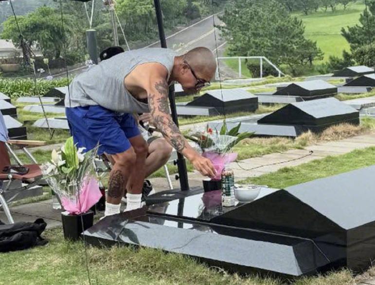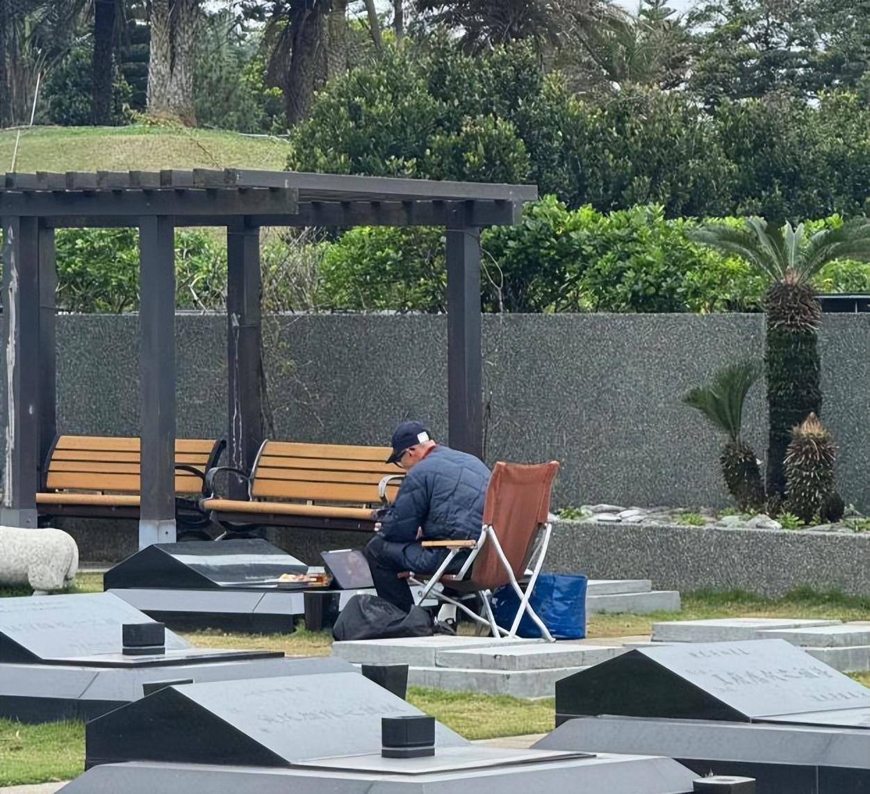 每天清晨七点十五分,不管天晴下雨,他总会准时出现。背包里装着大S爱吃的面包、黑咖啡,还有用首尔空运来的新米做的紫菜包饭。到了墓前,他先恭恭敬敬行韩国大礼,额头几乎贴到地面,然后拿出抹布,仔仔细细擦拭墓碑,连边角的缝隙都擦得一尘不染。接着摆好食物、鲜花,支起折叠椅,打开平板,循环播放着两人的合照、大S的影视作品。