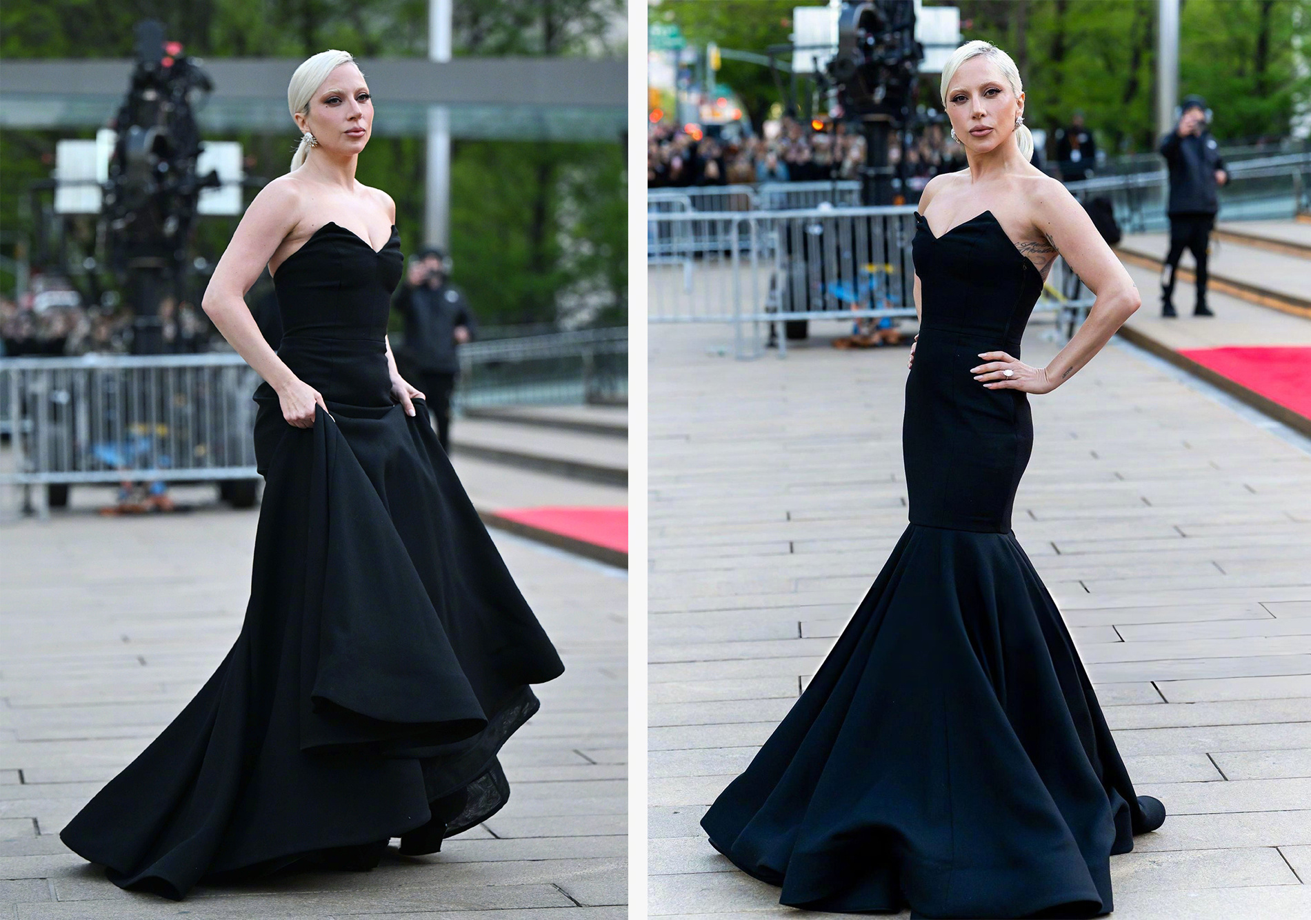 Lady Gaga 亮相《穿普拉达的女王2》纽约首映礼,穿着Hedi Slimane时期的Saint Laurent黑色礼服,简洁优雅的鱼尾裙,佩戴Tiffany高级珠宝,女王气场十足。时尚灵感解读