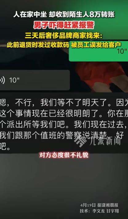 等到4月5号,电话终于来了。是宁波一家奢侈品店的。对方解释,是店员操作失误,把应该发给别人的收款码,错发给了别的顾客,结果钱就误打到肖先生账上了。