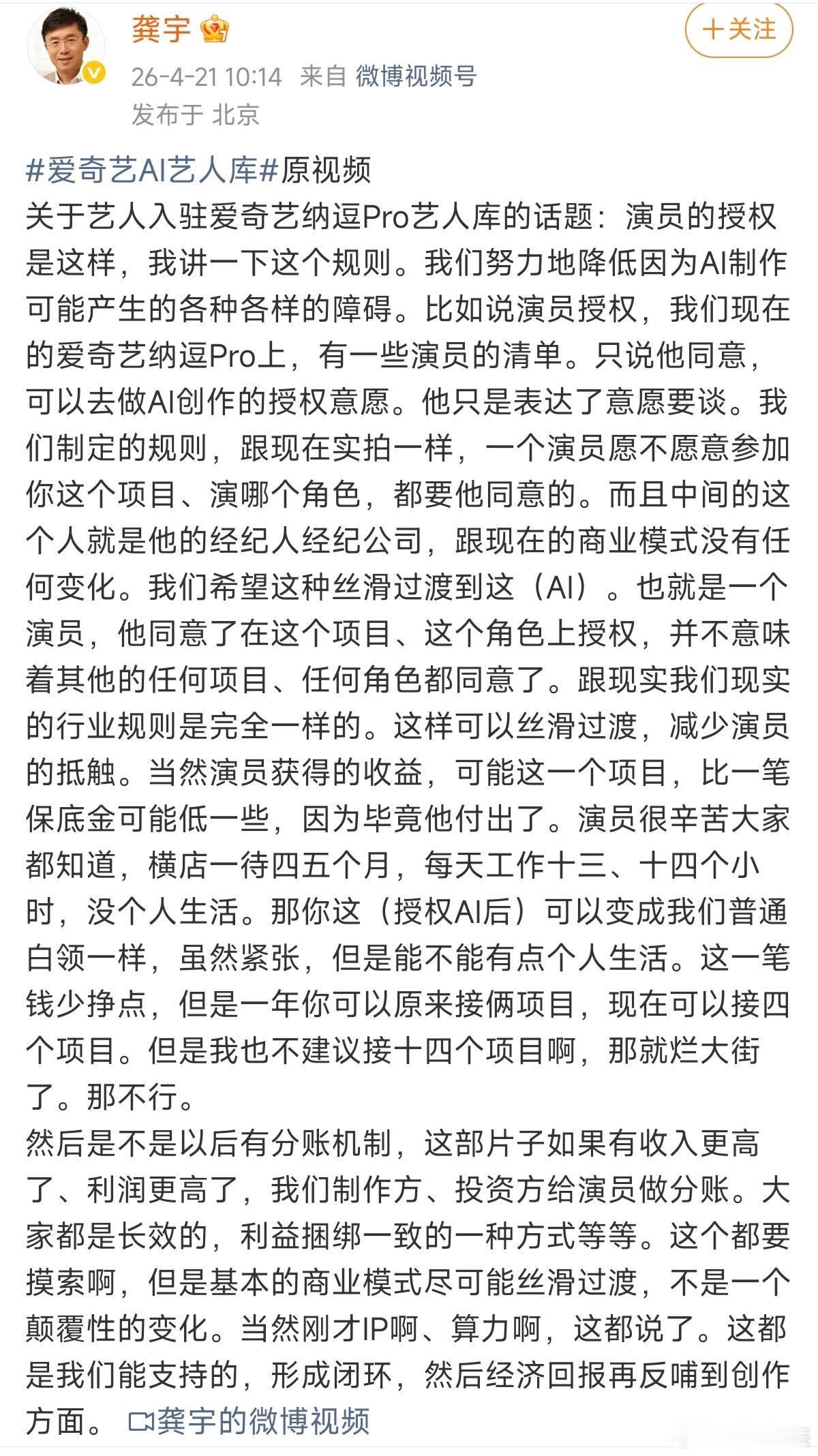 龚宇三连发爱奇艺CEO龚宇发声