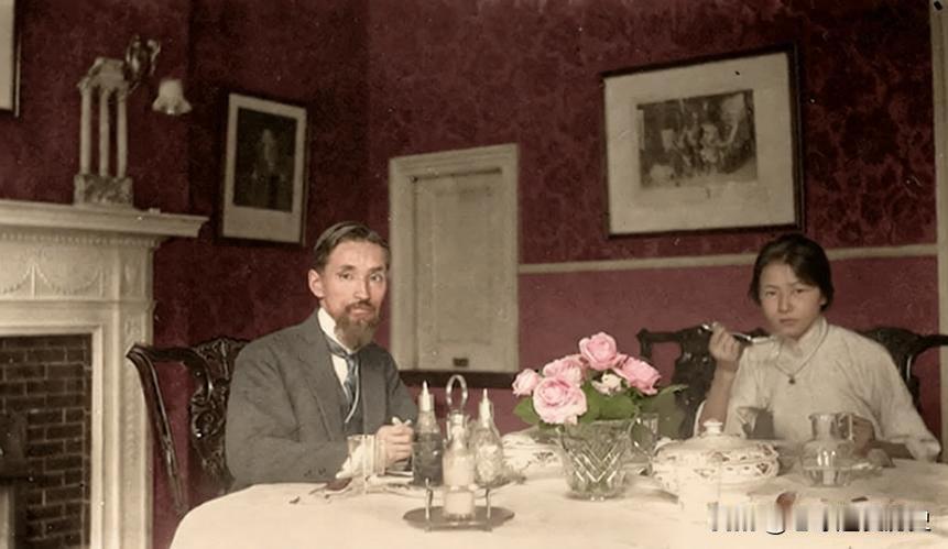 这张拍摄于1920年的伦敦旧照,定格了16岁的林徽因与父亲林长民在寓所共进西餐的珍贵瞬间。