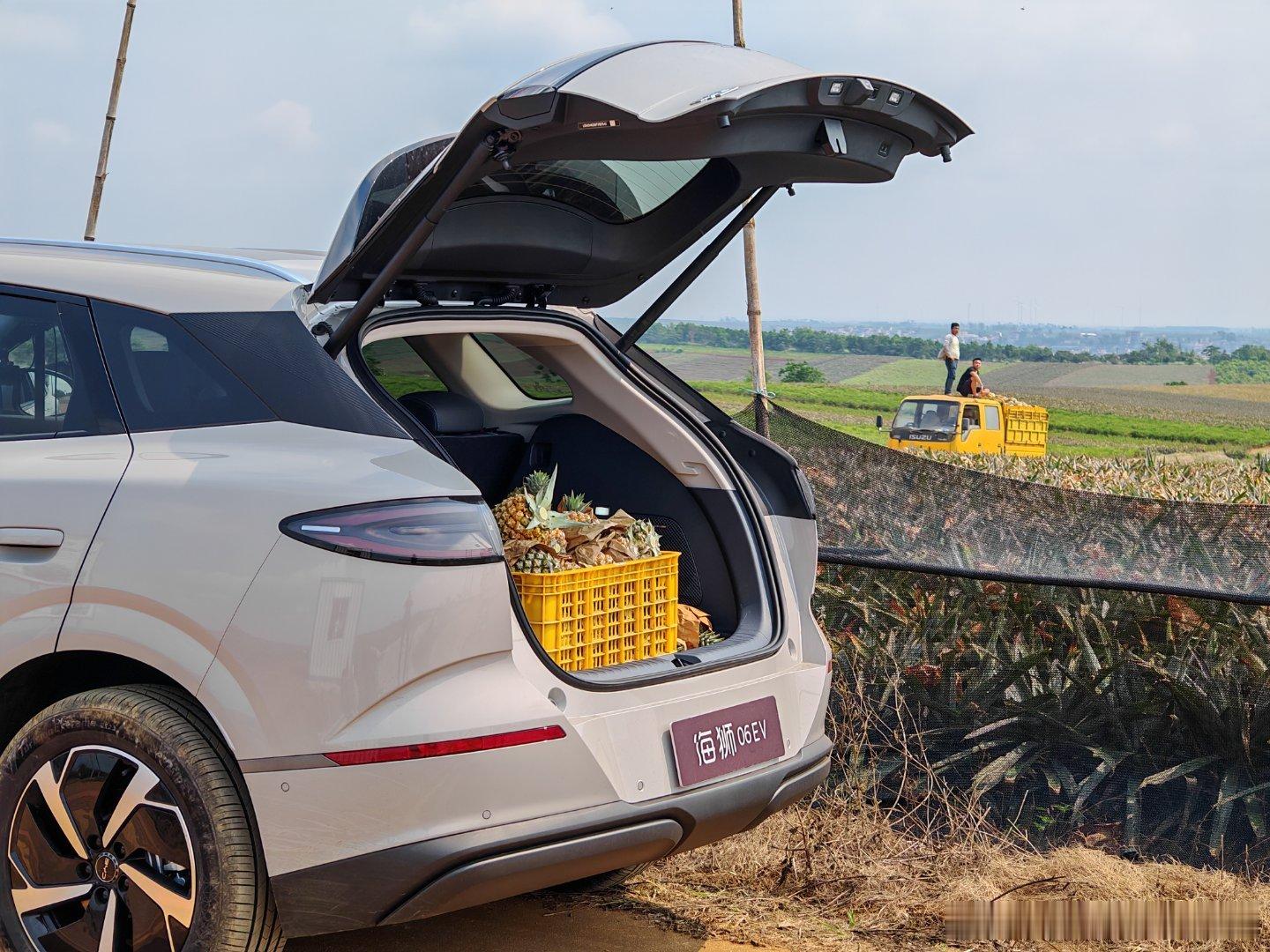 真不愧是菠萝的海,徐闻的菠萝太太太多了!在田边吃饱了直接再买一筐带回来,本来以为买60斤已经很多了,但放进海狮06的后备箱还显得空空荡荡的够了够了,就这样吧,已经够同事们实现菠萝自由了🍍比亚迪海狮06比亚迪 湛江·菠萝的海