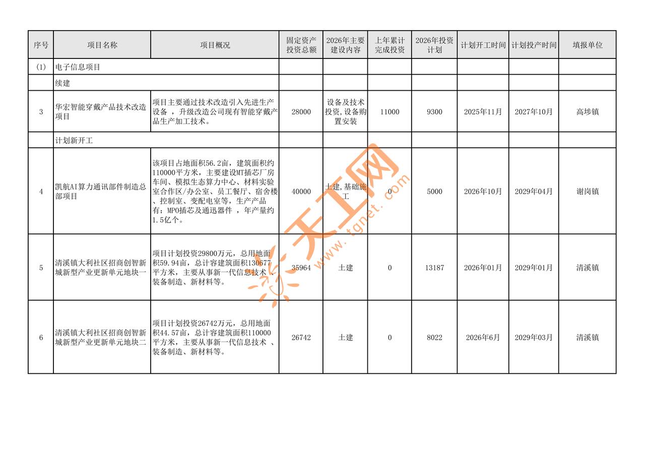 天工网AI签单管家基建东莞重大项目 广东基建 2026 重点工程