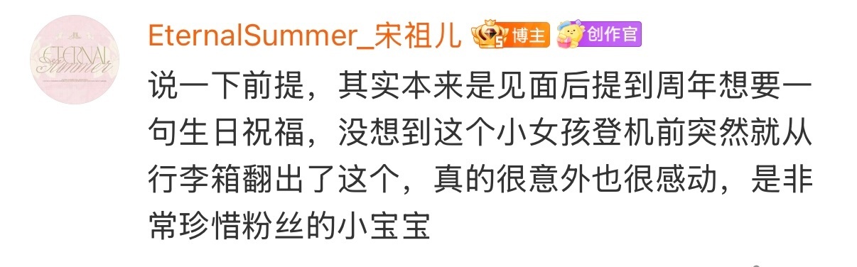 宋祖儿 宋祖儿给站姐送了开站一周年礼物站姐起初只是想要一句生日祝福,结果祖儿登