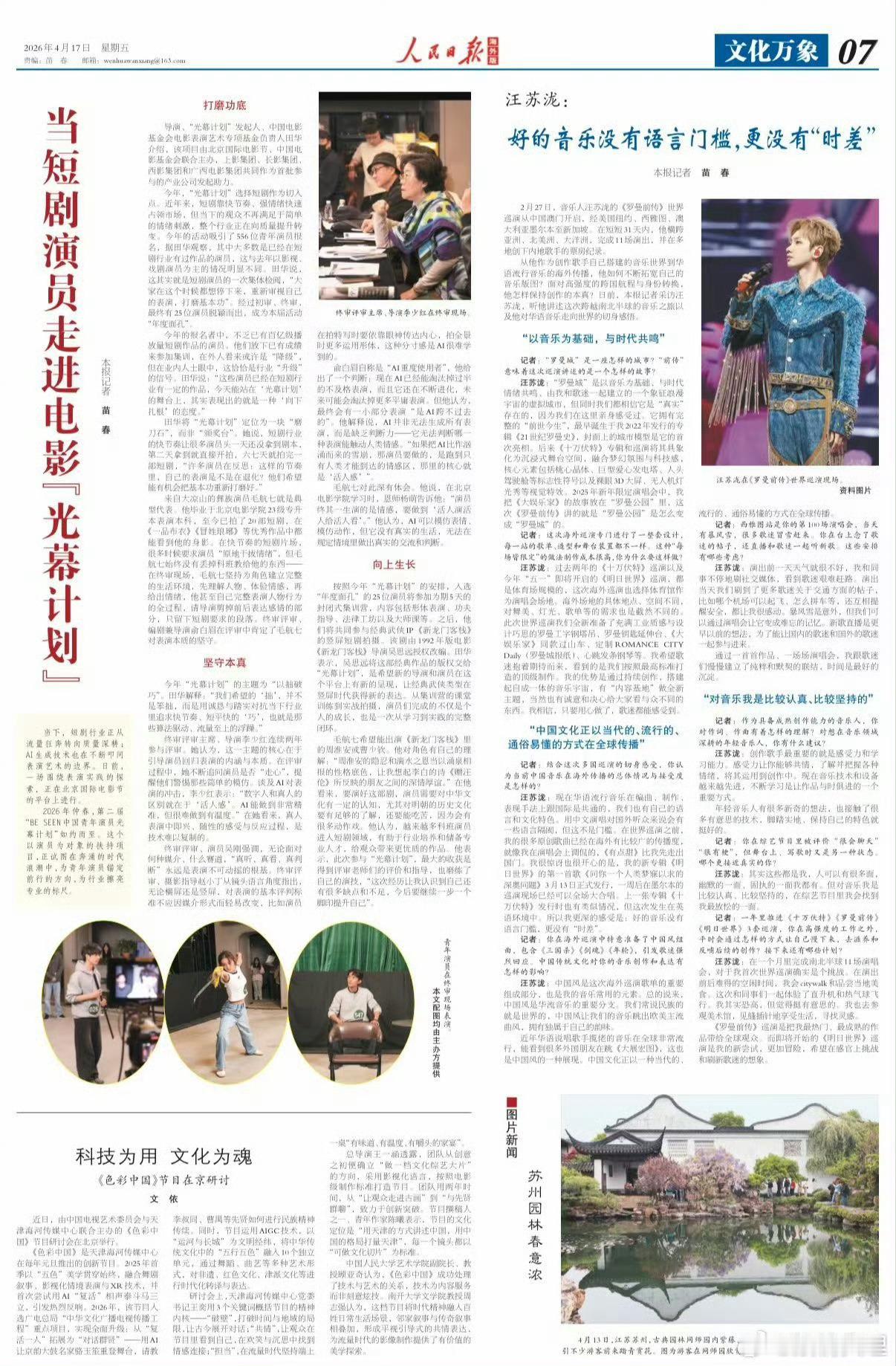 中国日报报道汪苏泷世巡 好音乐没有国界,但需要有人把它带出去。汪苏泷做到了,中国日报记录下了。31天11场,每一场都是华语骄傲。