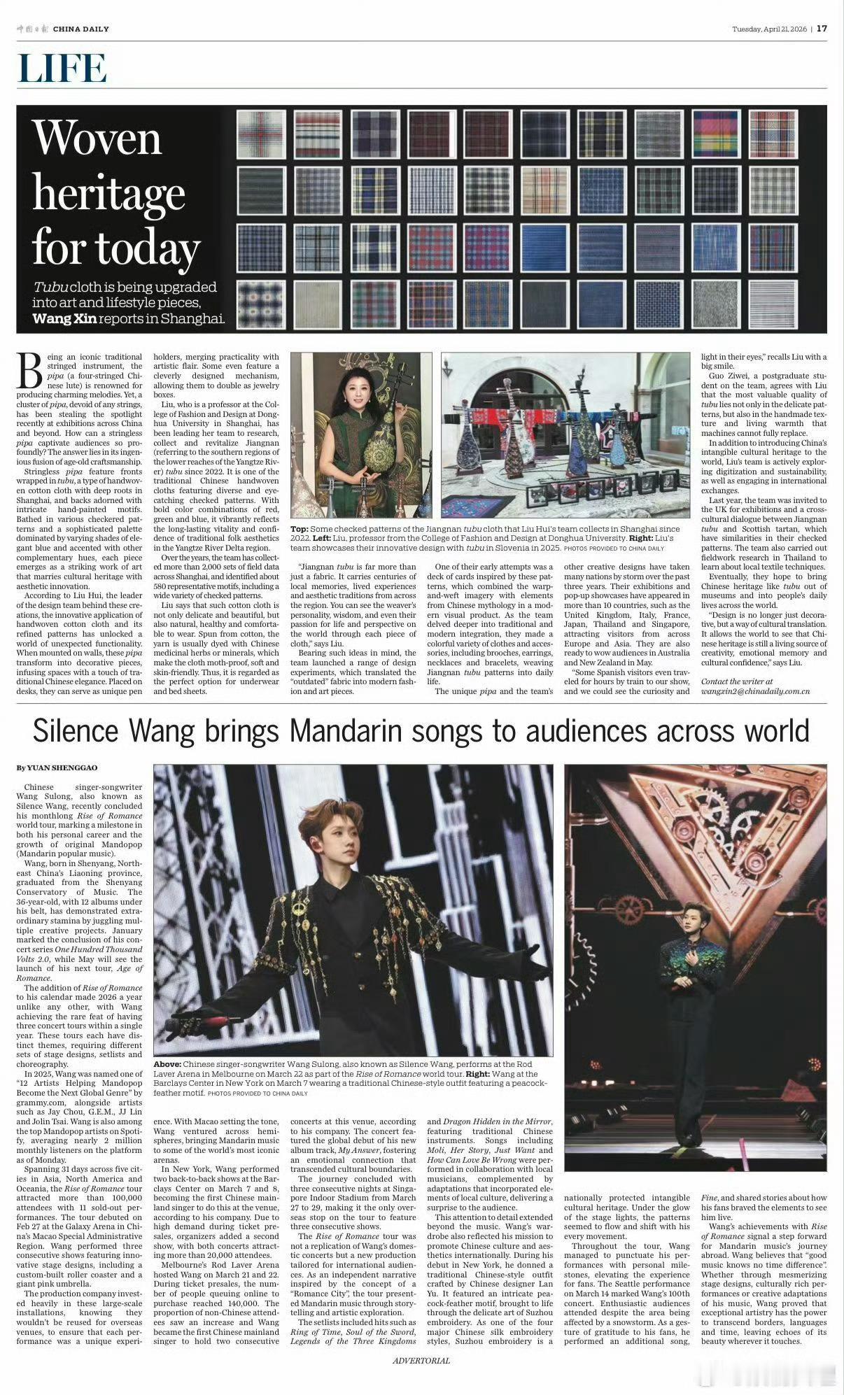 中国日报报道汪苏泷世巡 好音乐没有国界,但需要有人把它带出去。汪苏泷做到了,中国