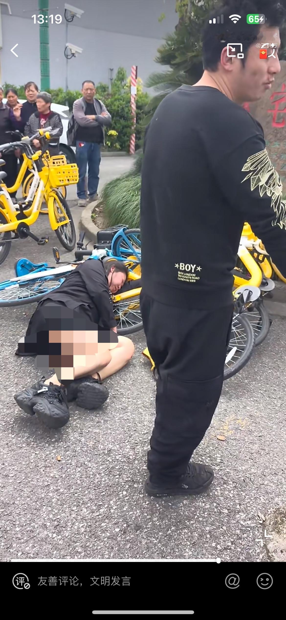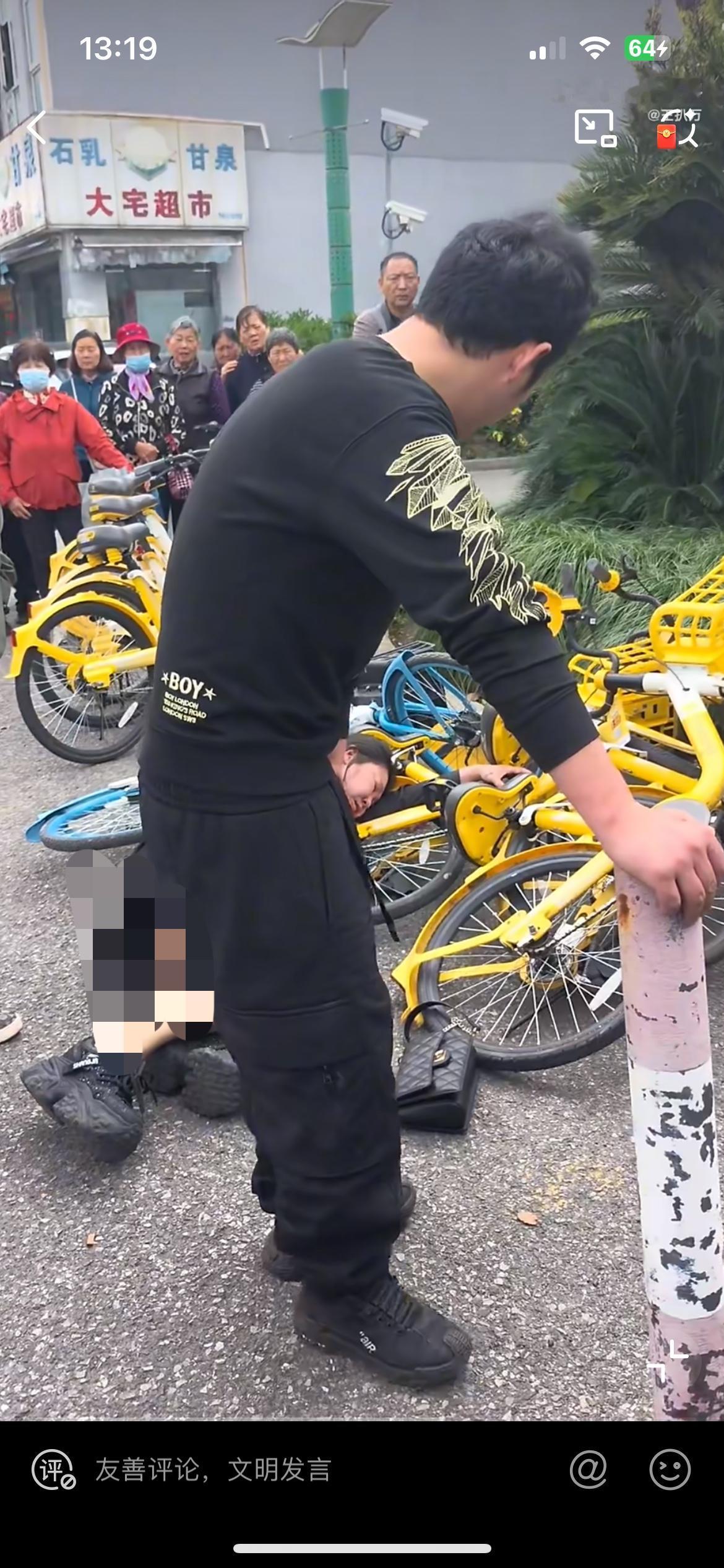 一喝醉酒的男子下死手把老婆打倒在地,路过的白发大爷看不过去,把男子拉到了一边,避