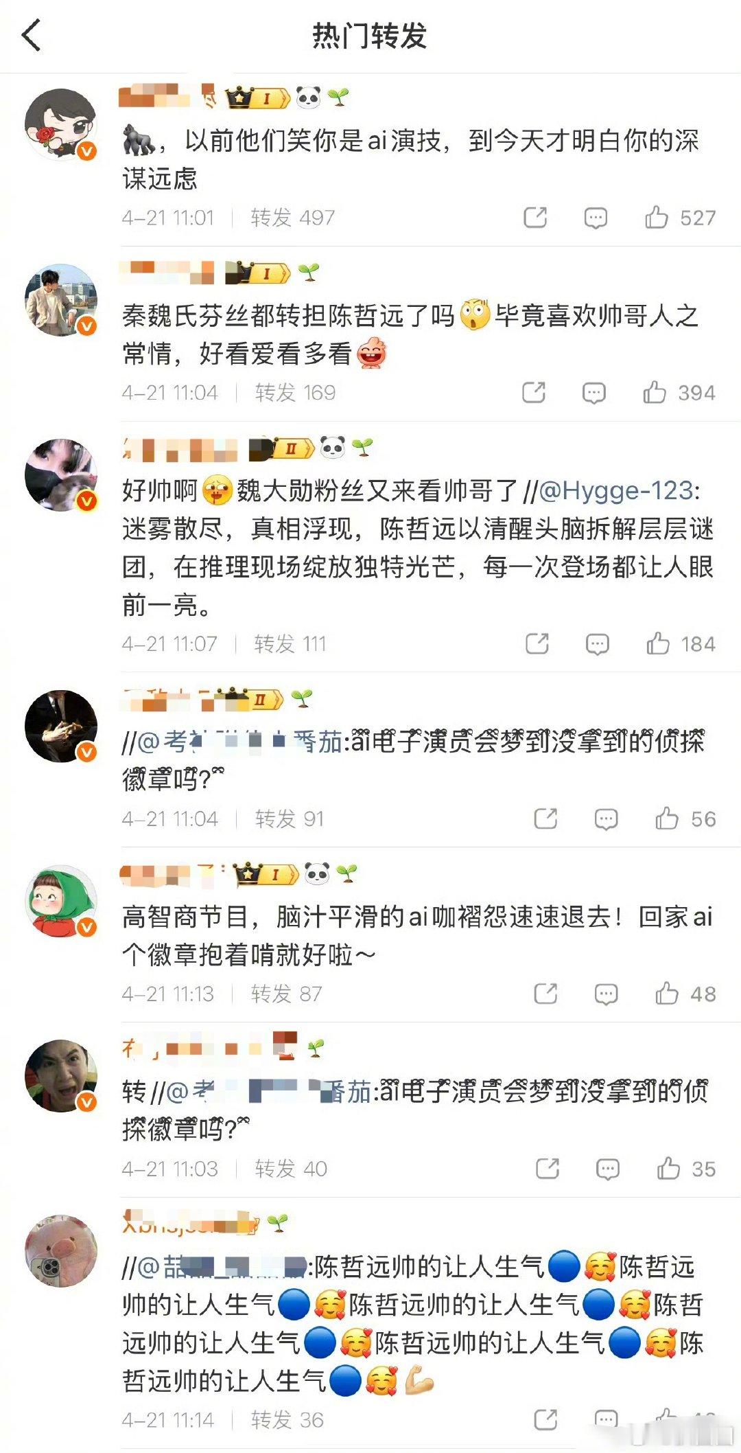 大侦探官博下的陈哲远粉丝和魏大勋粉丝~