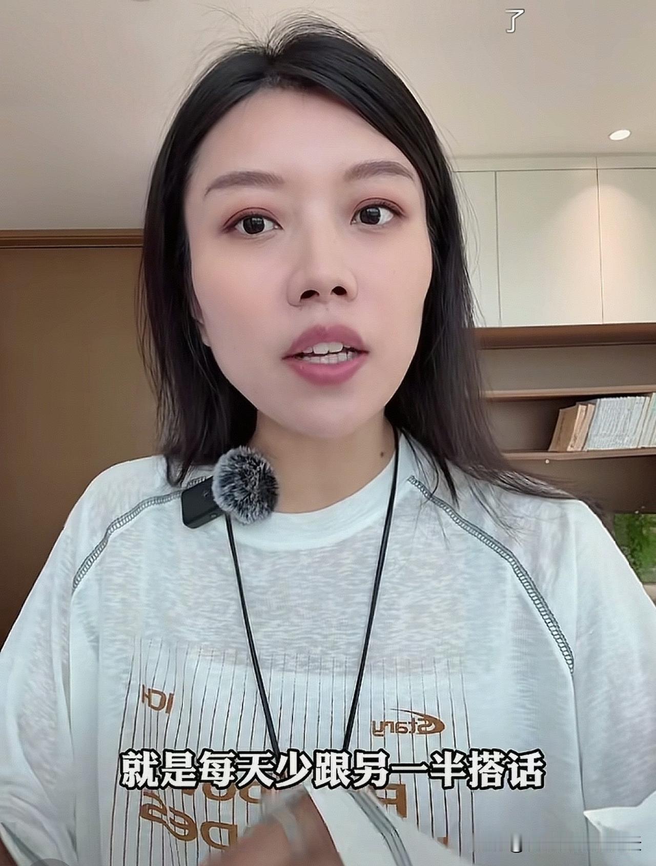 现在越来越多中年人悟出了一个道理,就是每天少跟另一半儿搭话,一天不吭气,自己心里边儿特别舒坦。但凡要多说两句,因为想法不一样,不知道哪句就戳心窝子了,瞬间这个饭也吃不下了,觉也睡不踏实了,心里边儿堵得慌。所以现在很多人啊,都学会了护着自己,不聊不吵不交流,省心又省力,也行,怎么舒服怎么活。这是一个美女在视频中教中年男人的,为被不添堵少跟另一半搭话。
