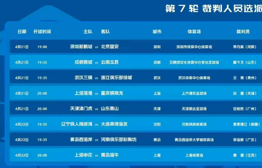 中超联赛第七轮今晚全面开赛,上午足协公布了本轮联赛的裁判员名单,其中备受关注的辽宁德比由主裁判麦麦提江执哨,上一次麦麦提江担任主裁判还是第二轮的京鲁大战,不过那场比赛他和VAR裁判唐顺齐漏判了一粒点球,于是从京鲁大战以后,他就再也没吹过中超的比赛,不过期间他吹罚过苏超,和国际邀请赛,前两天他还吹罚了鲁超揭幕战,上轮中超联赛他担任了视频裁判,本轮联赛担任辽宁德比主裁判,由此可见他应该是解禁复出可以吹中超联赛了,作为本赛季的第一场辽宁德比,场面势必非常火爆,希望麦麦提江能展现自己的专业水平,圆满完成这场比赛的吹罚工作!