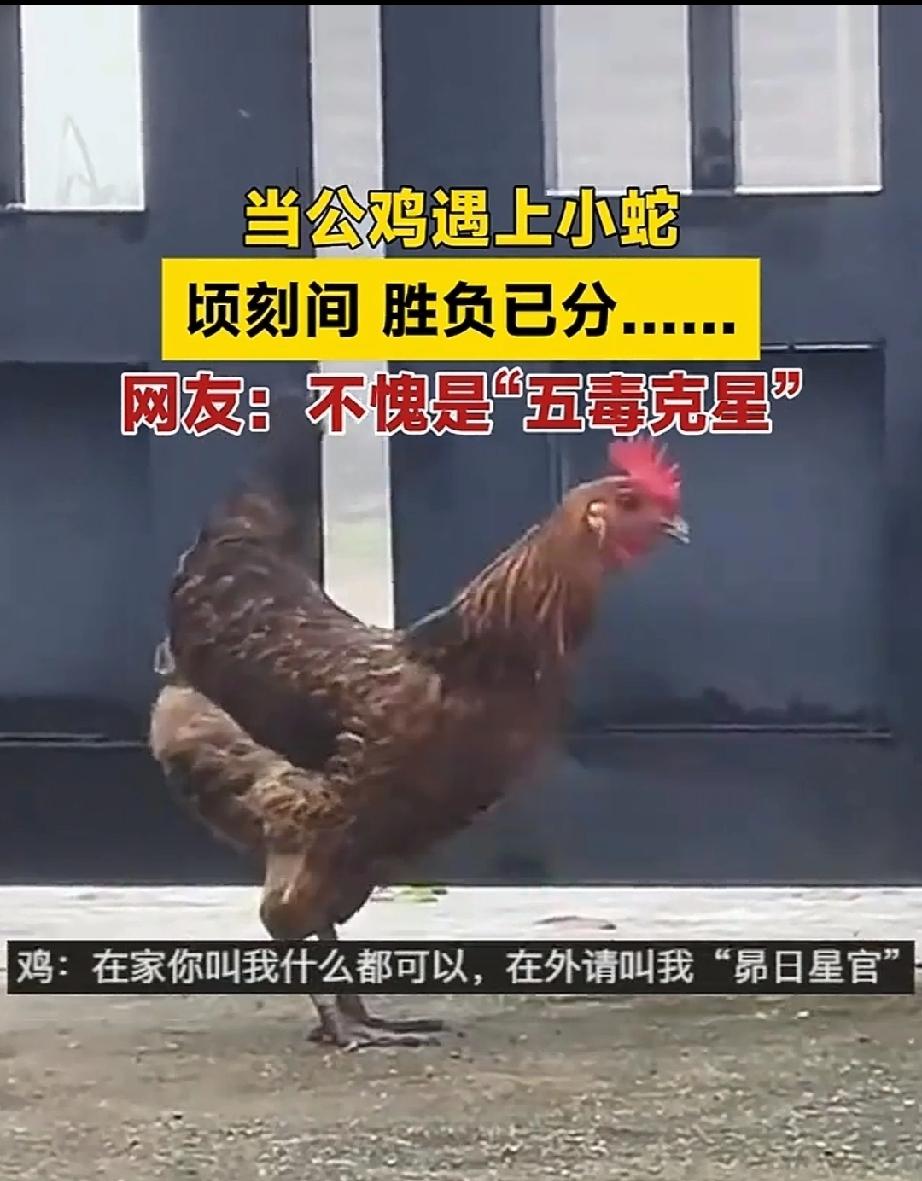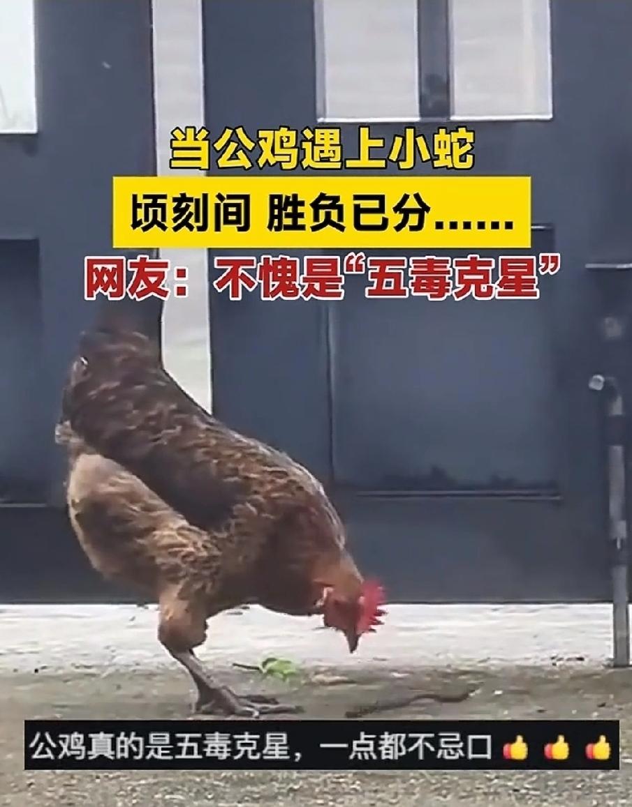 公鸡遇上小蛇顷刻间胜负已分不自量力