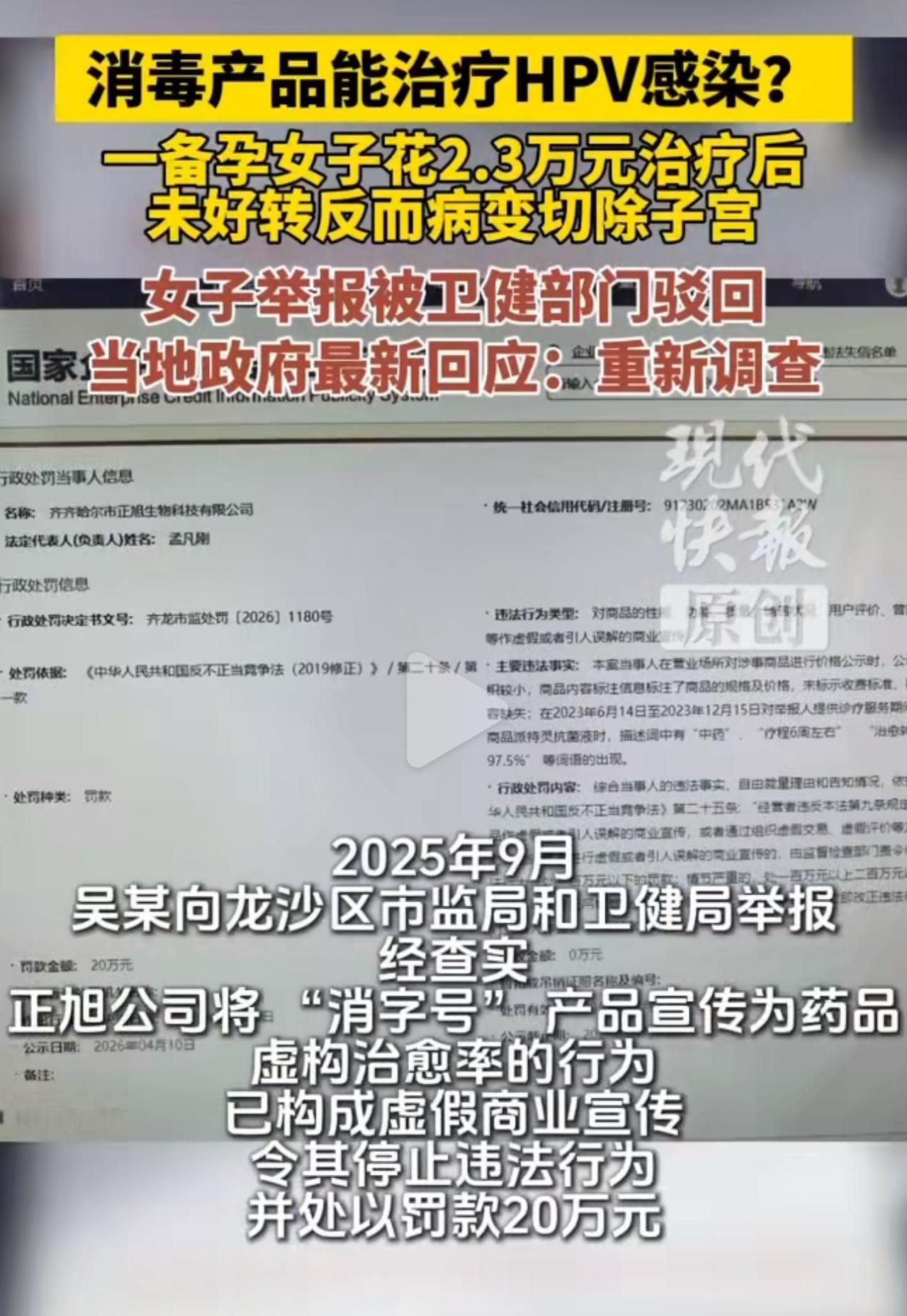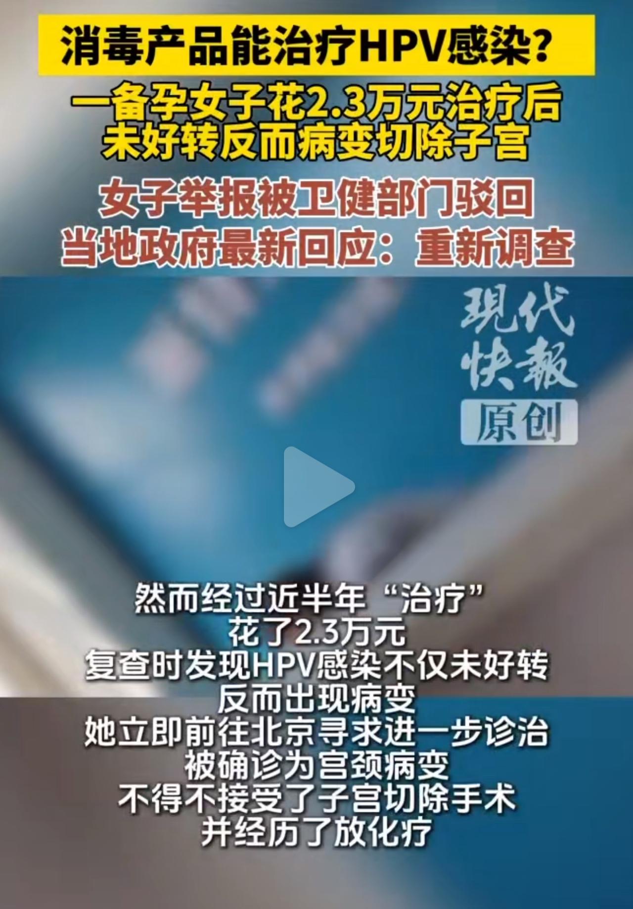 更过分的是,这家公司就拿普通消毒水,冒充治HPV的神药,各种吹嘘转阴率高、能治好病变。吴某信以为真,花了2万3,老老实实治了大半年,就盼着病好能备孕。