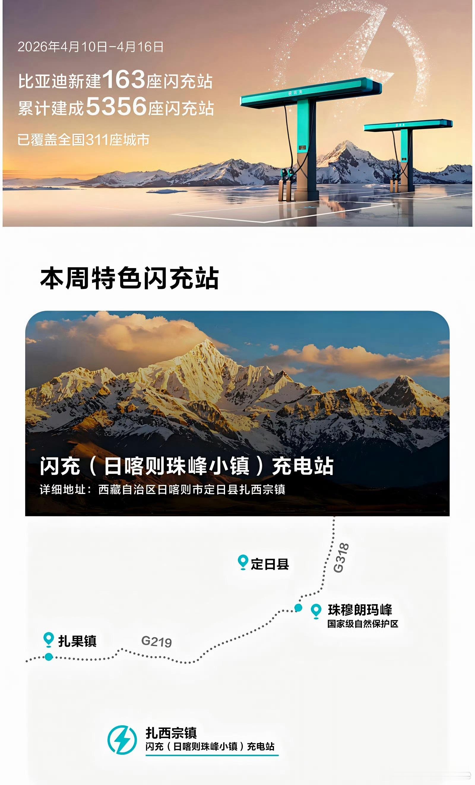 没想到比亚迪这么速度!!闪充站直接建到珠峰上去了??截至月中,比亚迪的闪充站已经累计建成5356座,覆盖全国311座城市。甚至连珠峰附近的小镇也已经布局安排上了