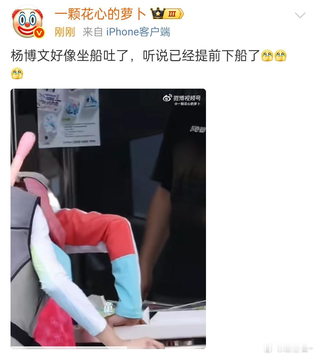 杨博文晕船吐了 昨天跳伞今天就去坐船,这工作强度是不是有点太大了,杨博文直接在拍摄过程中晕吐了,好心疼啊