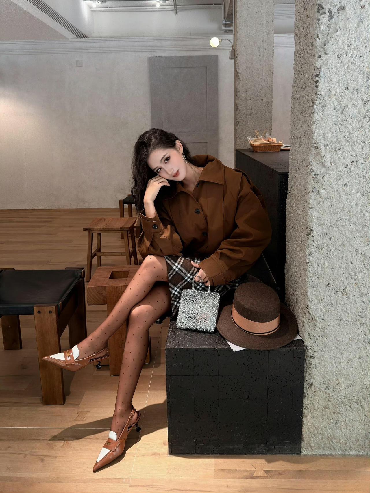 这种“同色系棕调单品+复古格纹+细节配饰”的组合,很适合咖啡厅或轻约会场合,复古又高级。焦糖棕穿搭 焦糖棕复古穿搭