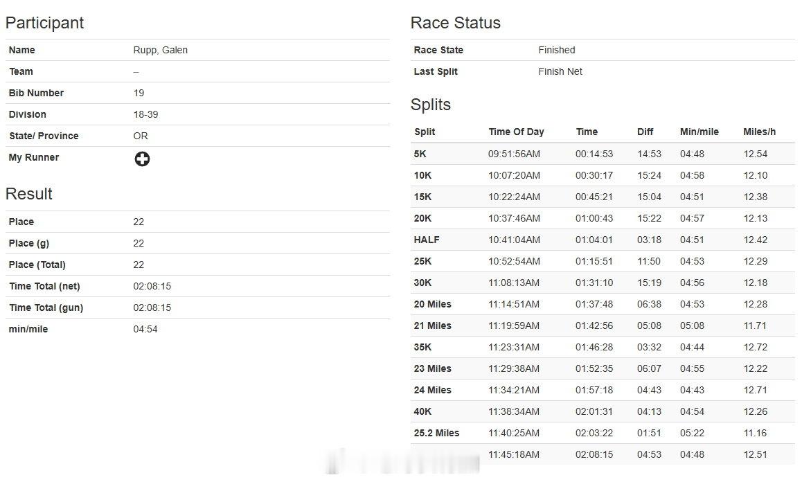 美国老将盖伦鲁普 Galen Rupp 在2026波士顿马拉松中跑出2:08:15第22名的成绩。虽然不算亮眼,但这是他2021年芝加哥马拉松后的最好成绩了。里约奥运会马拉松第三已经过去10年了,依旧有如此战斗力,相当不简单。