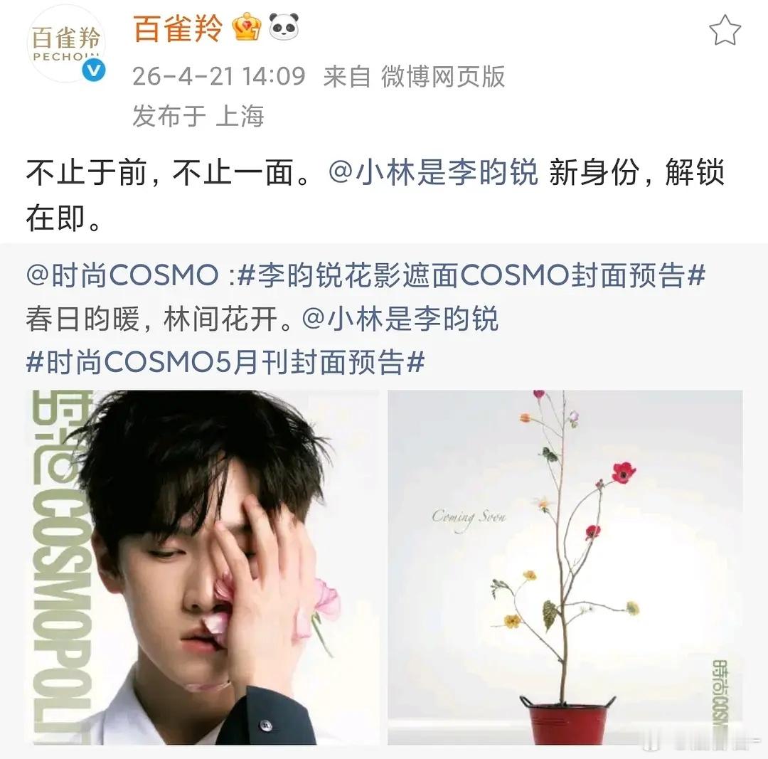 小林李昀锐首登女刊五大,百雀羚推封且解锁新身份