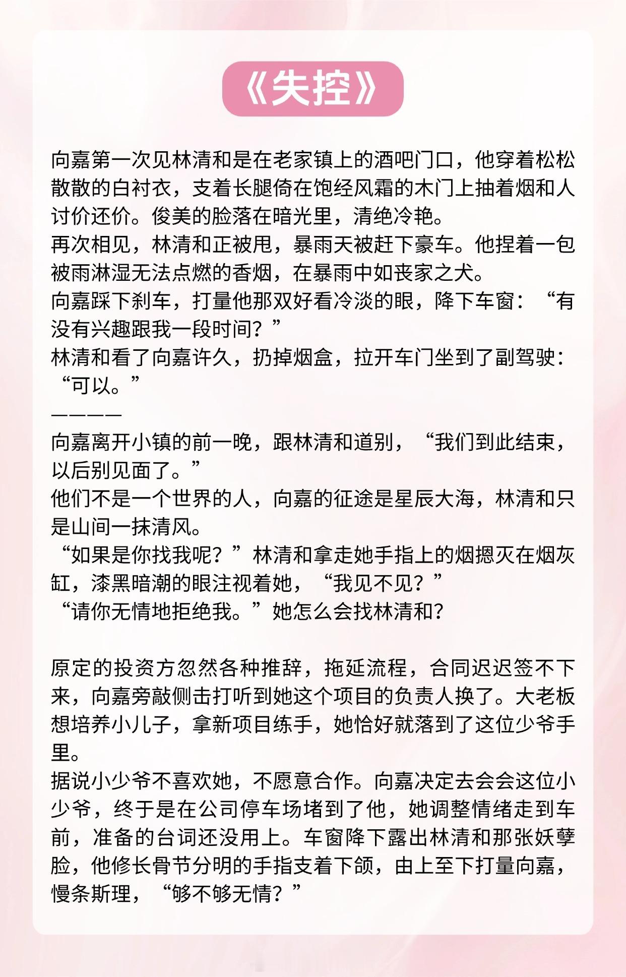 【暧昧拉扯现言】别一直看着他,也请看看我。《雾里青 》作者:明开夜合《失控》作者