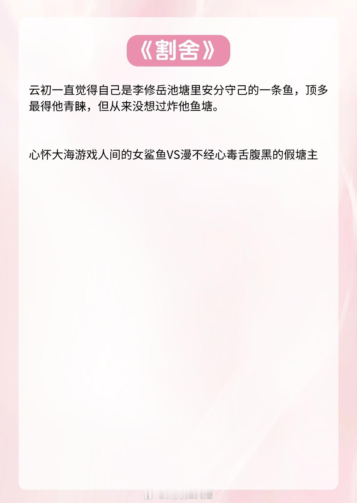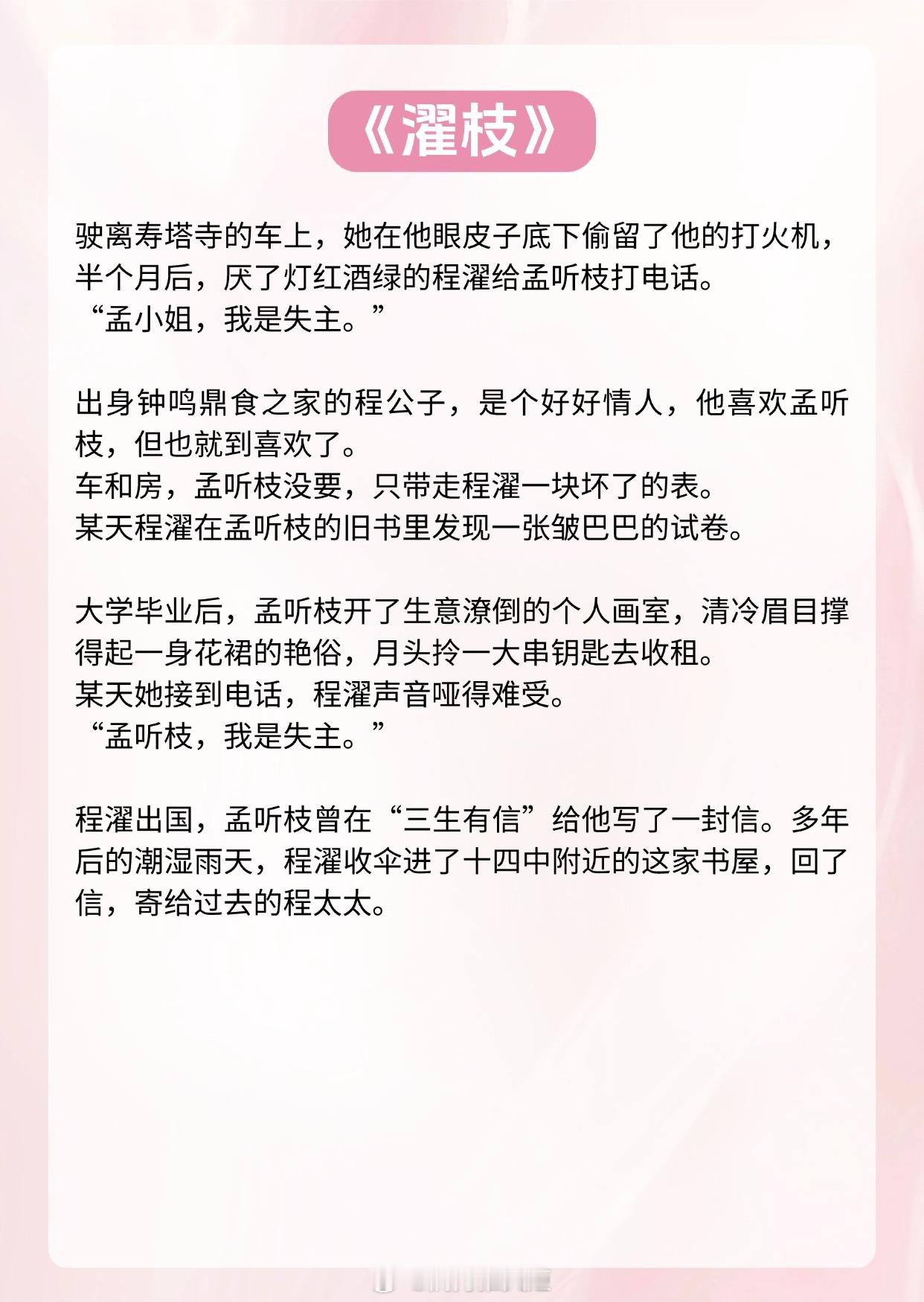 《雾里青 》作者:明开夜合《失控》作者:周沅《旋木尽头》作者:金呆了《濯枝》作者:咬枝绿《名分》作者:半截白菜《割舍》作者:非木非石推文推文言情小说推荐