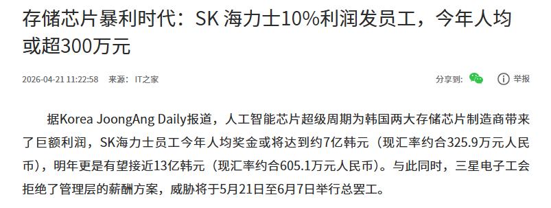 内存荒下,SK海力士员工喜提奖金