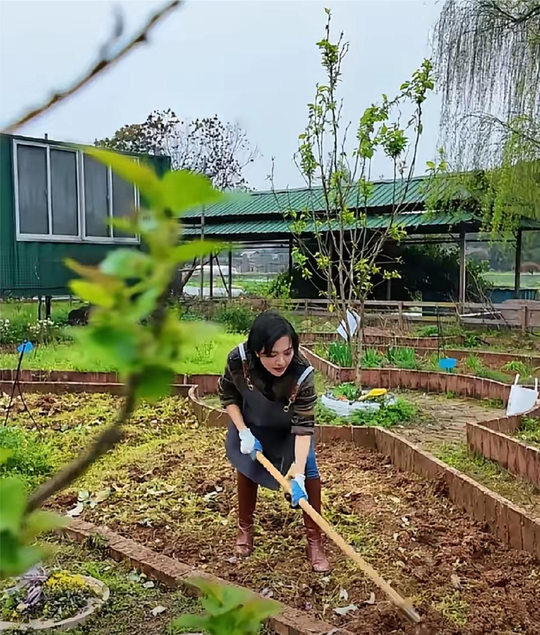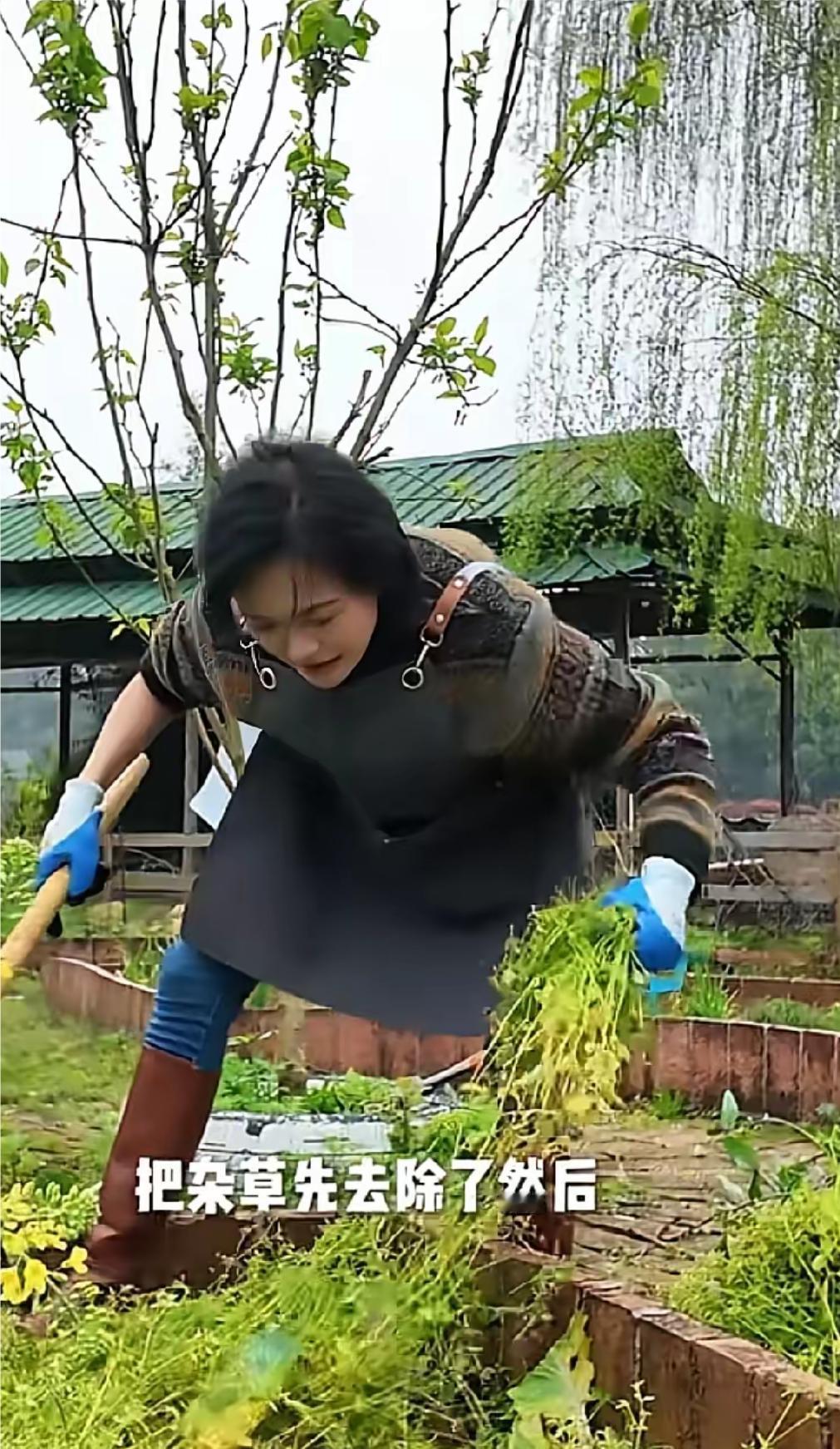 杨乐乐还晒出她第一天锄草,挖地,栽树视频,视频中的她,系着围裙,戴着手套,穿着雨靴,认真的在田地里干着活,干得有模有样。汪涵没有来帮忙,杨乐乐一个人干,也干得很起劲。