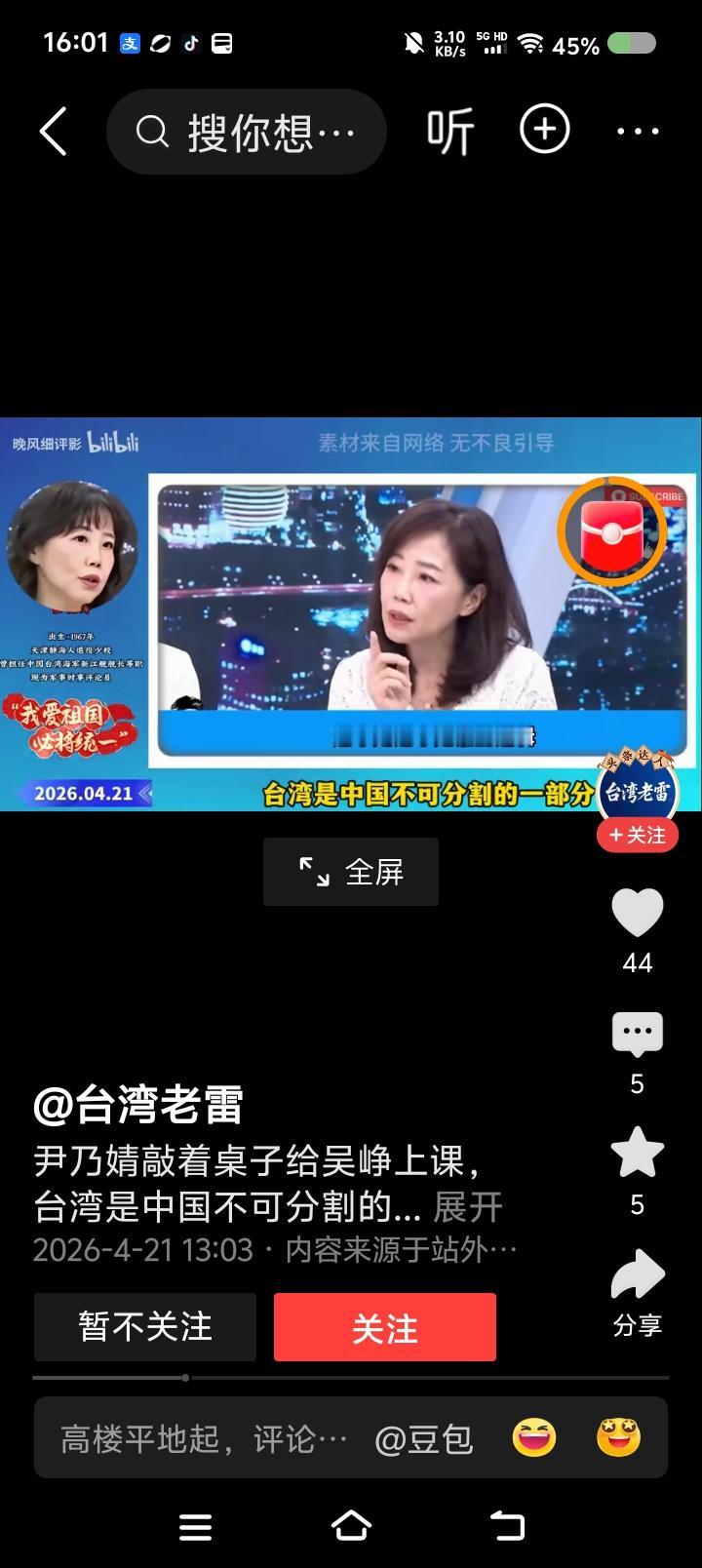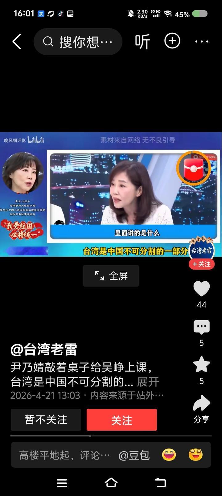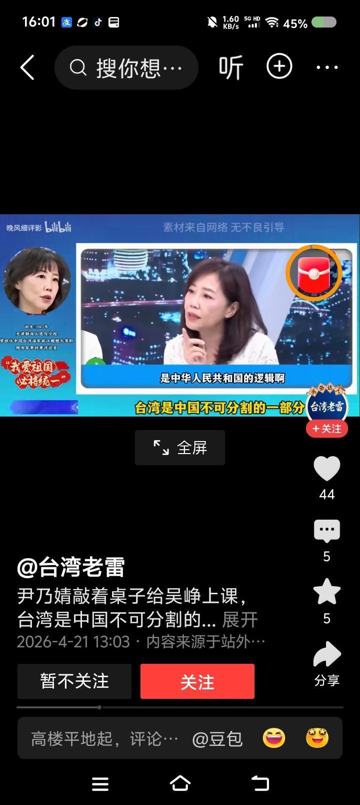 尹乃菁的逻辑—— 网上视频:台湾省节目里,国民党的尹乃菁当着民进党发言人吴峥的面