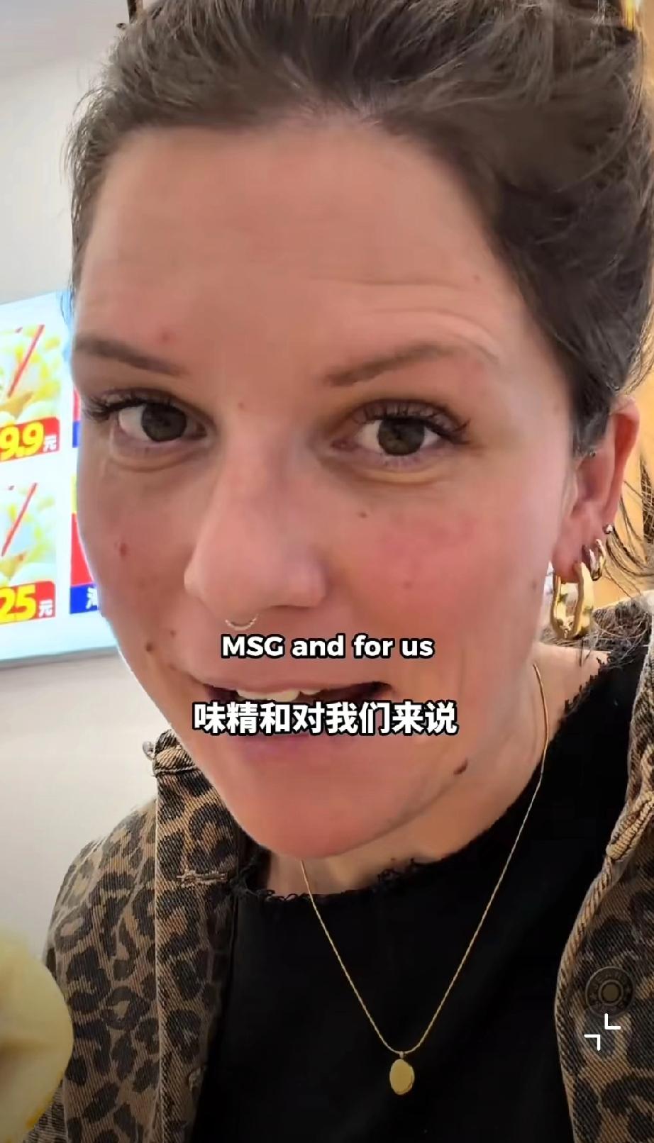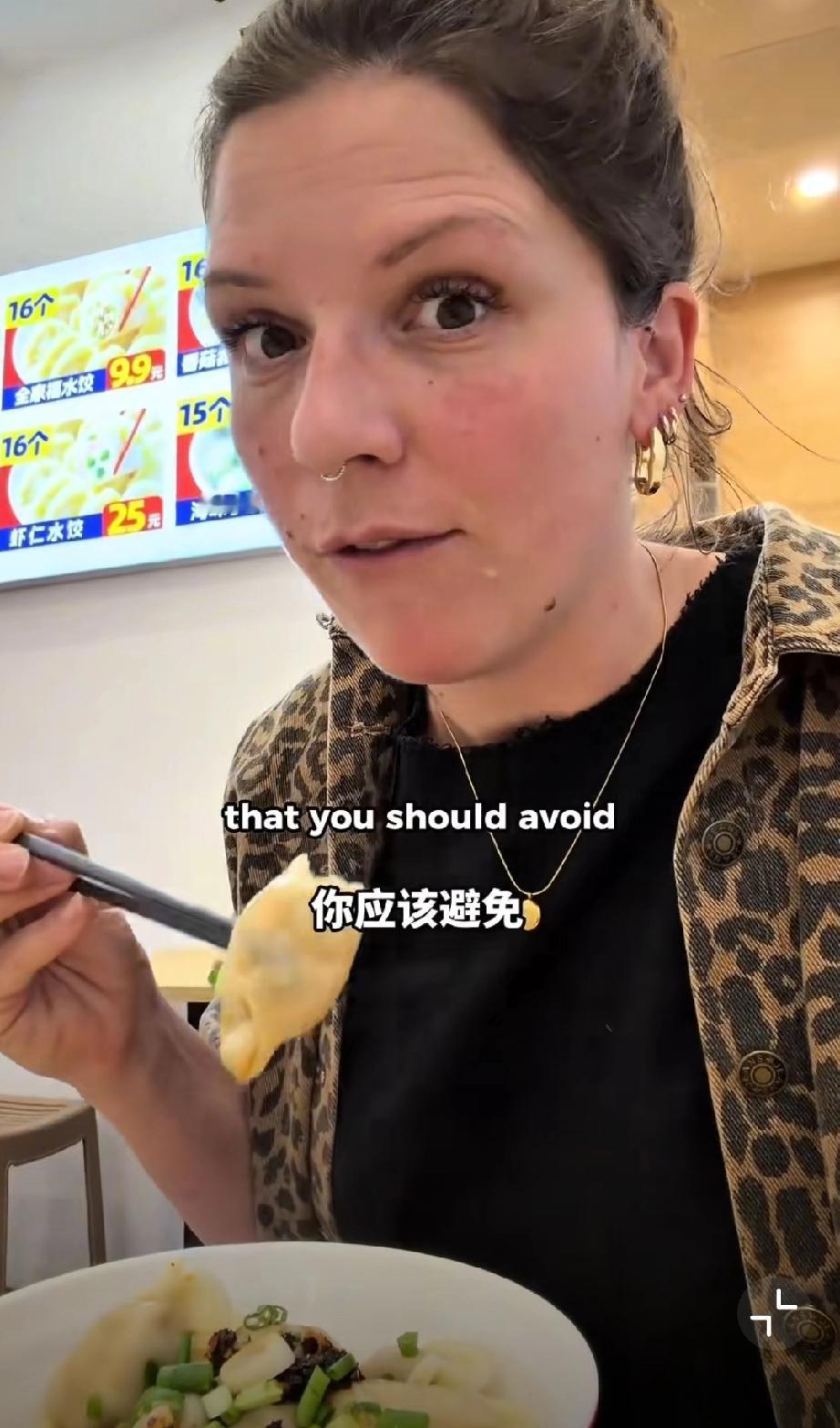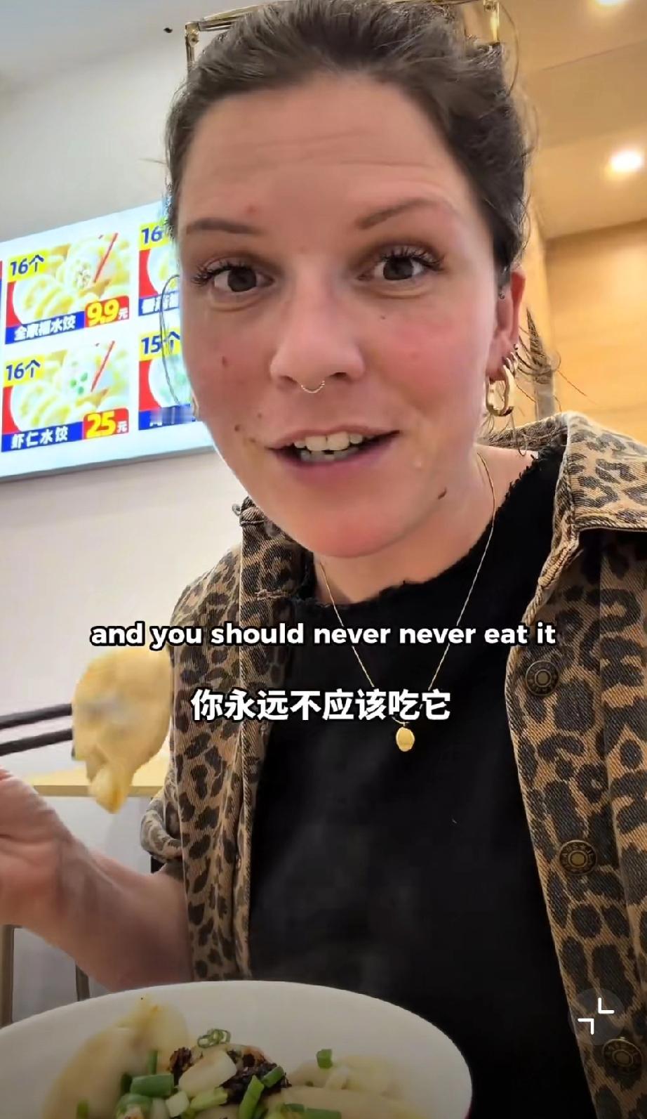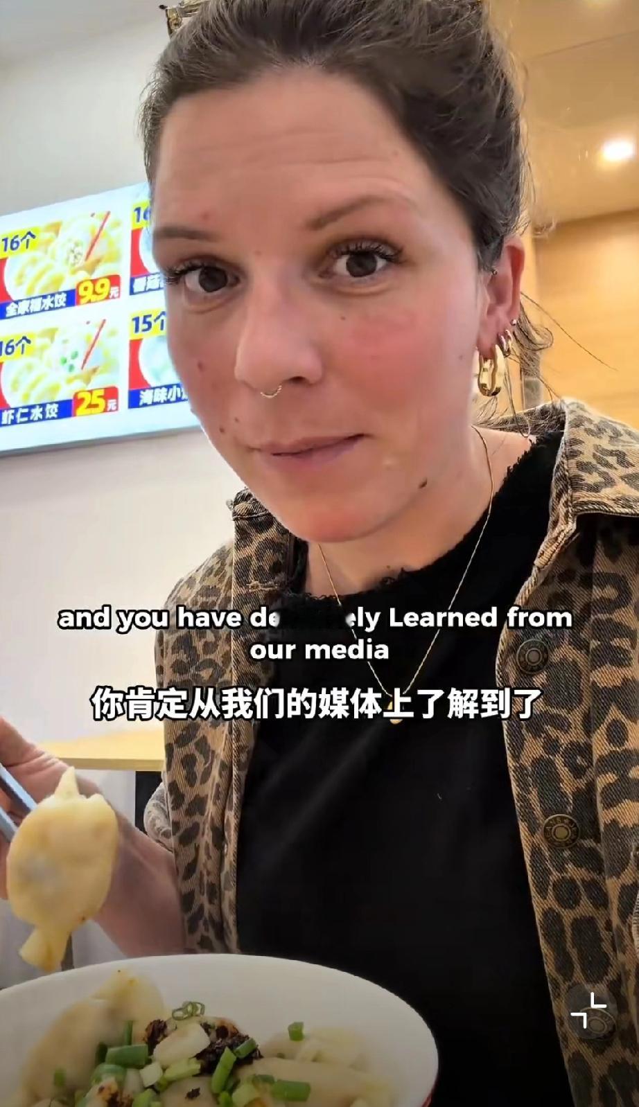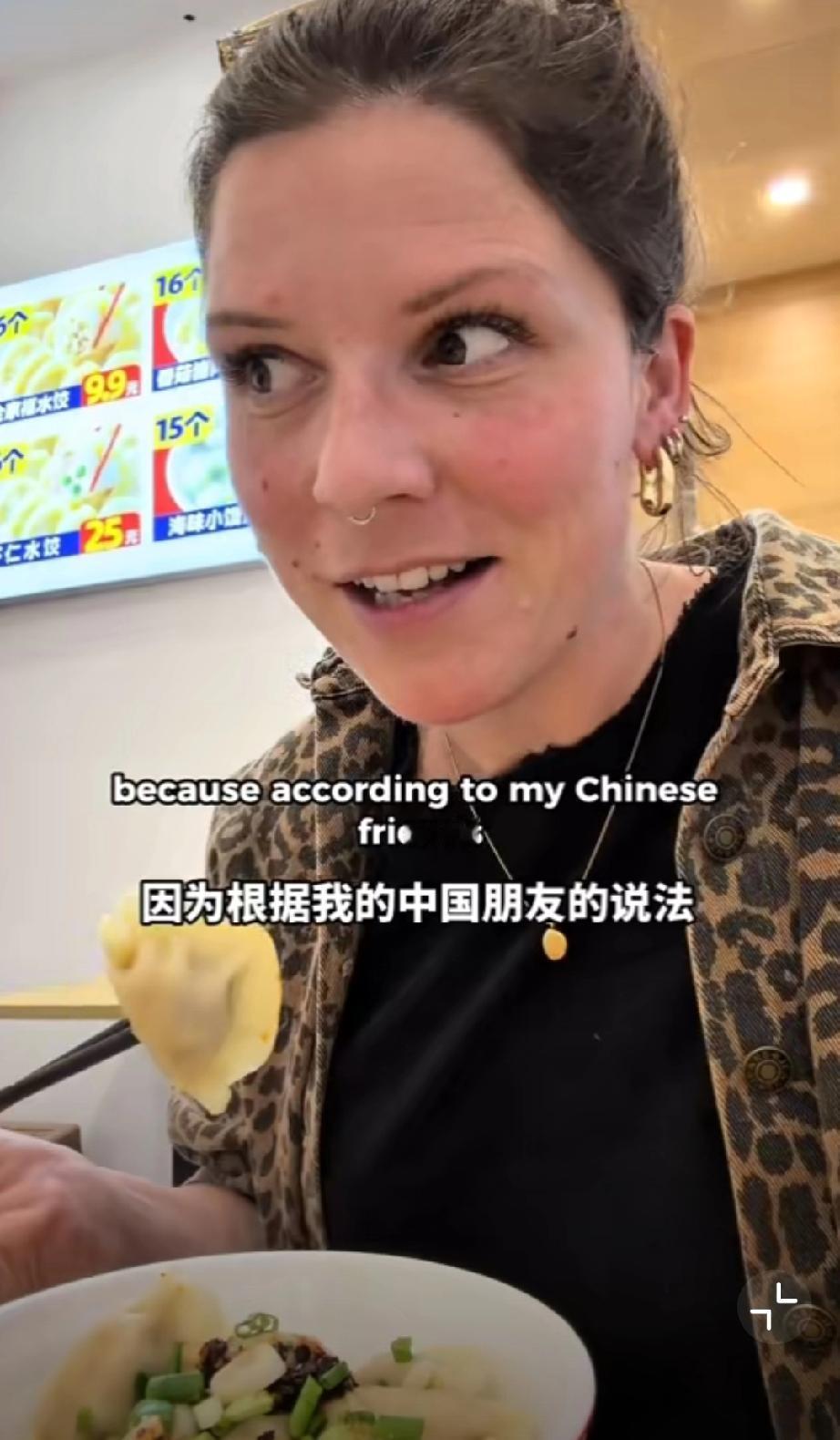 这个外国网友在中国吃饺子,她吐槽看到了在英国永远看不到的东西,那就调味的味精,外