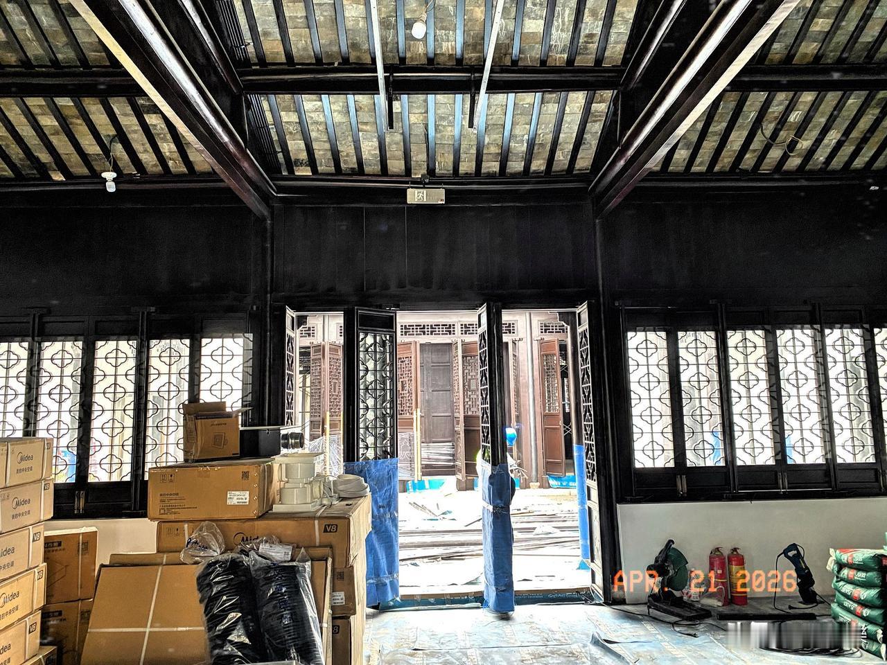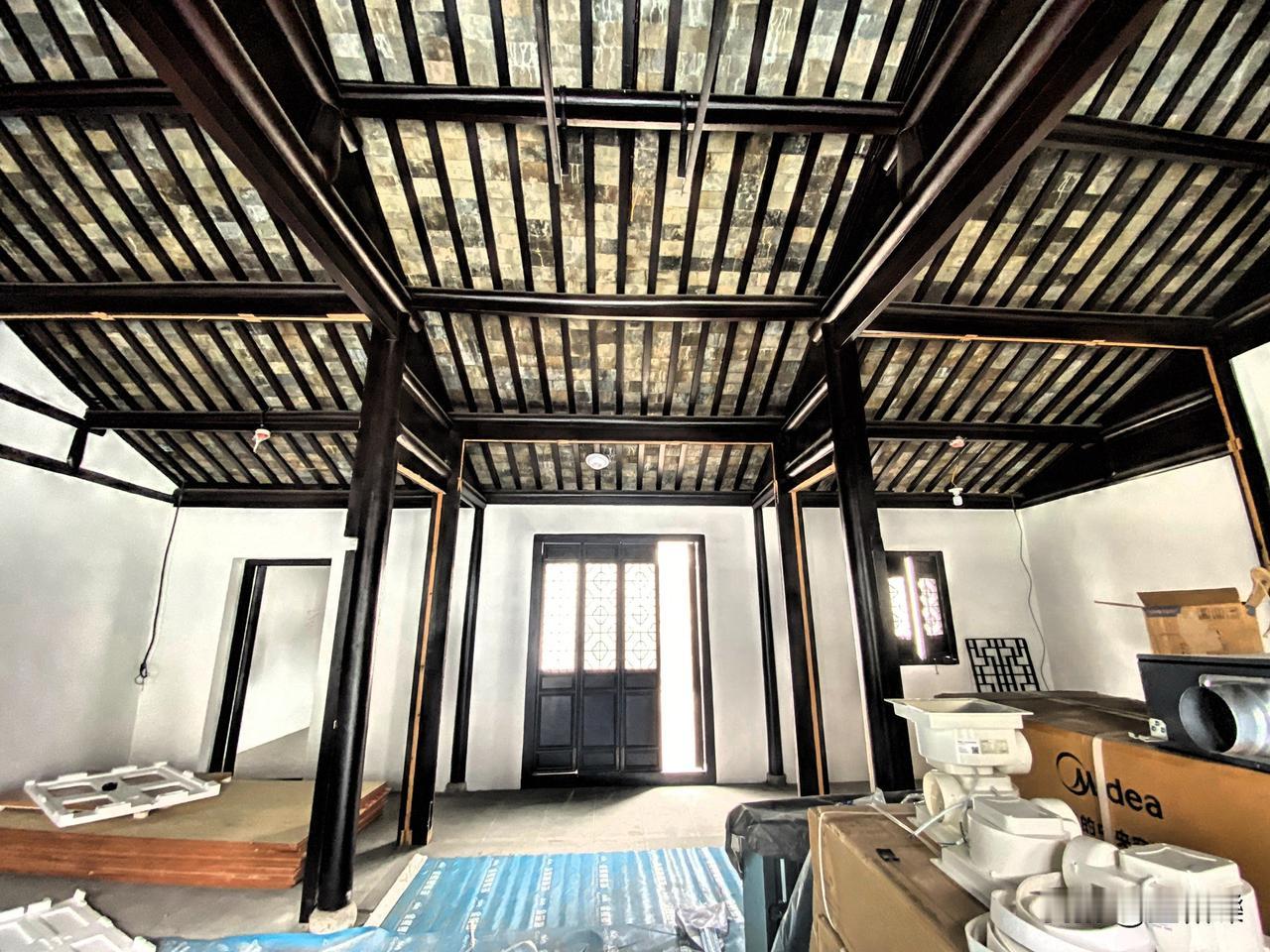 今天去时,房子还正在装修当中,本来是不对外公开的。遇到一位热心的安保师傅,苏州本地人,特地带路让我们进到装修现场参观了一下。