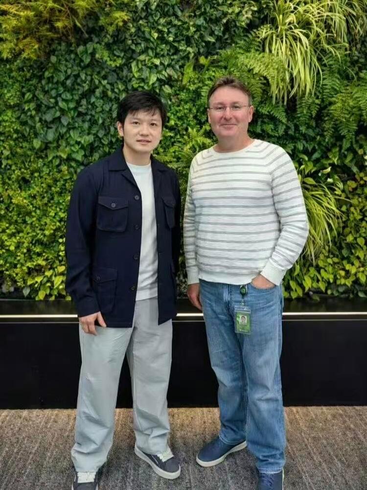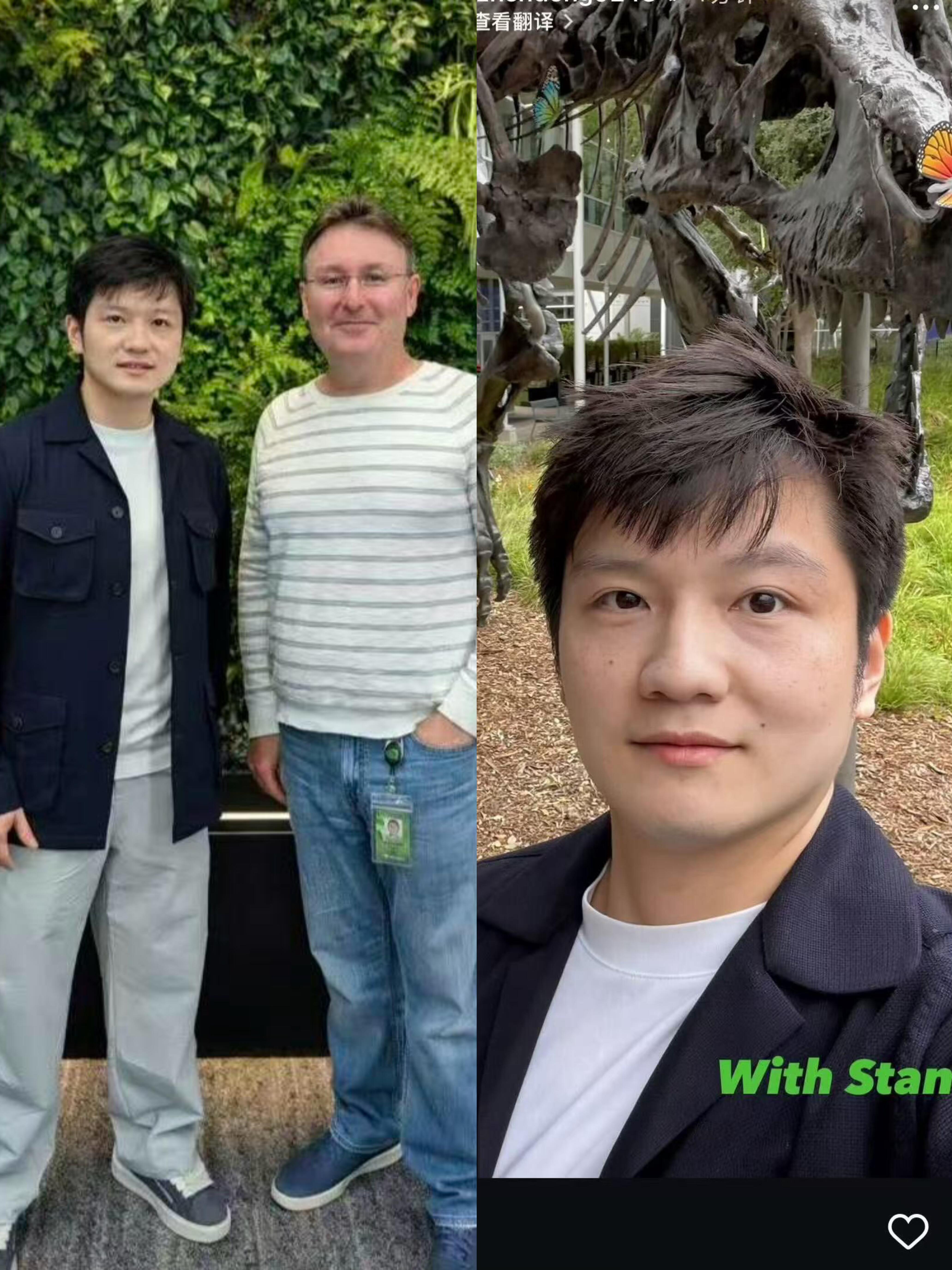 樊振东和霸王龙合影樊振东参观大厂啦!哥自拍知道镜像了参观大厂的东东白白嫩嫩!在各